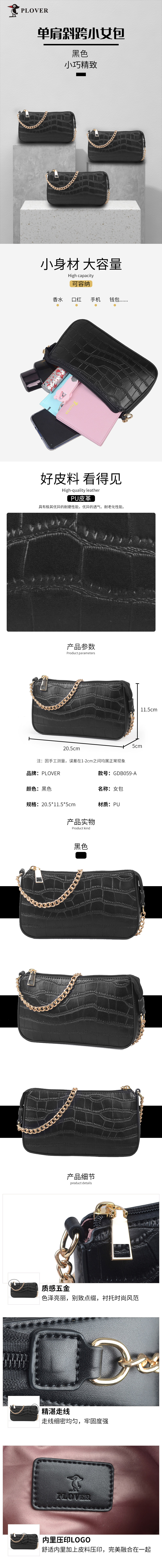 商品名称:PLOVER香港啄木鸟女包小斜跨GDB059-A 黑色