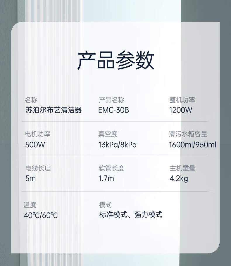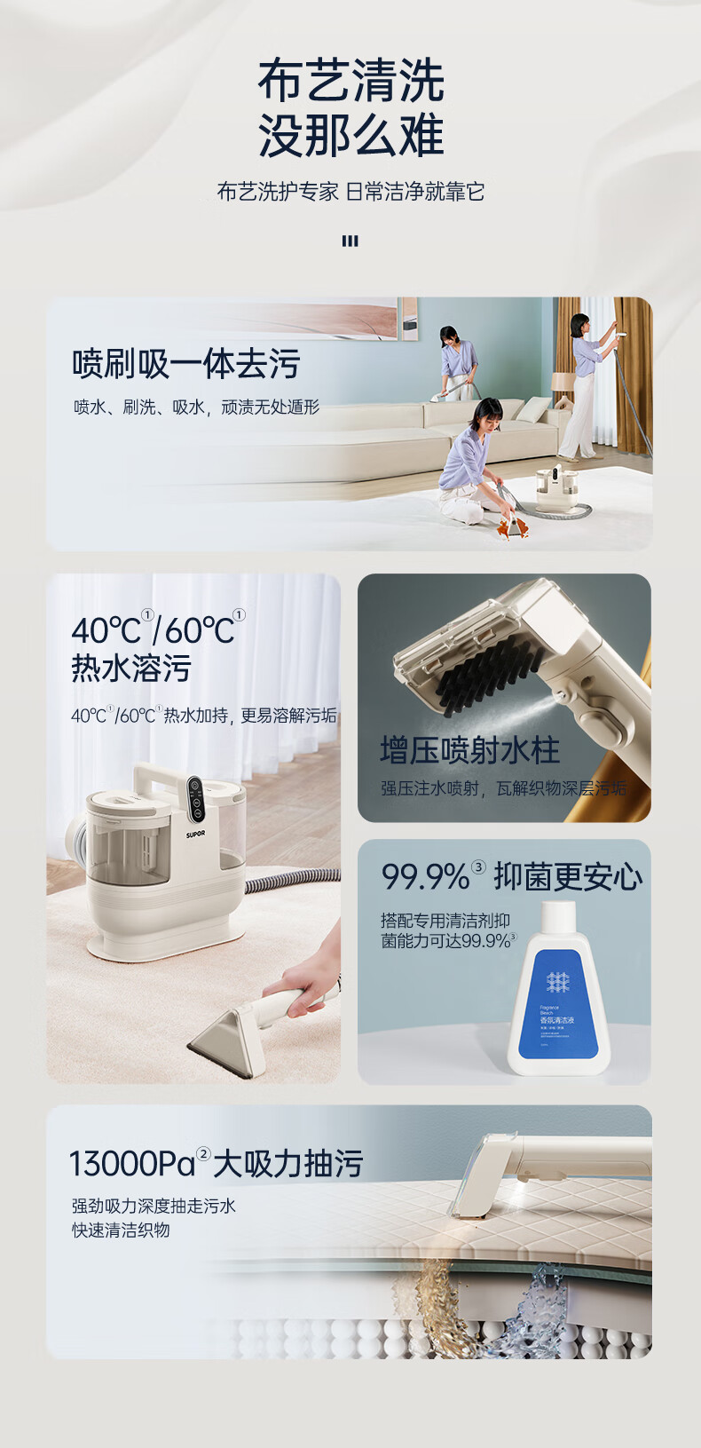 商品名称:苏泊尔(SUPOR)布艺沙发清洗机 宠物地毯床地毯清洗机 EMC-30B (单位:台) 白色