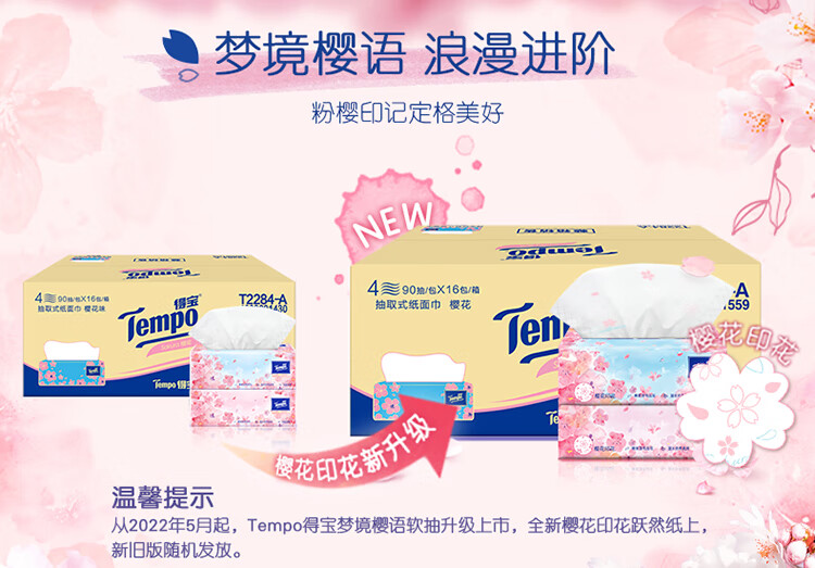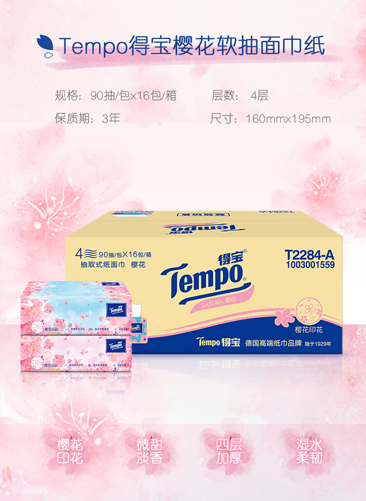 商品名称:得宝抽纸樱花味4层90抽16包T2284-16E(单位:箱) 白色