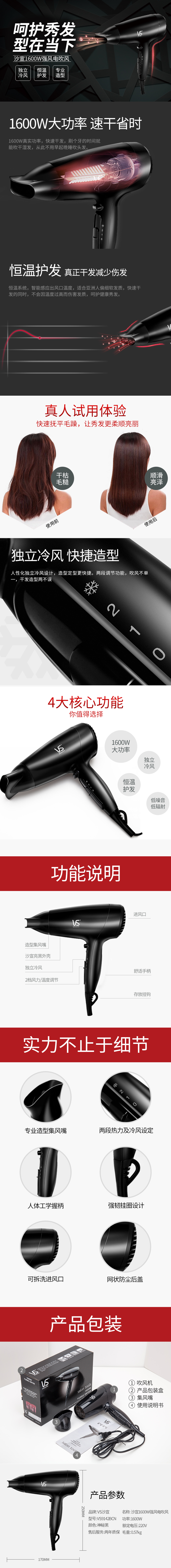 商品名称:沙宣1600W强风电吹风VS9142BCN(单位:个) 黑色