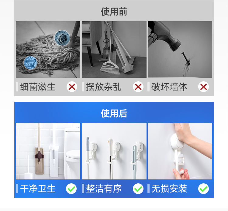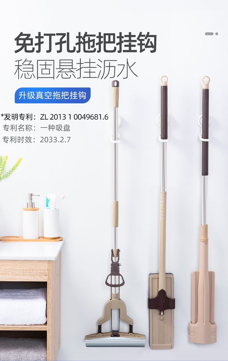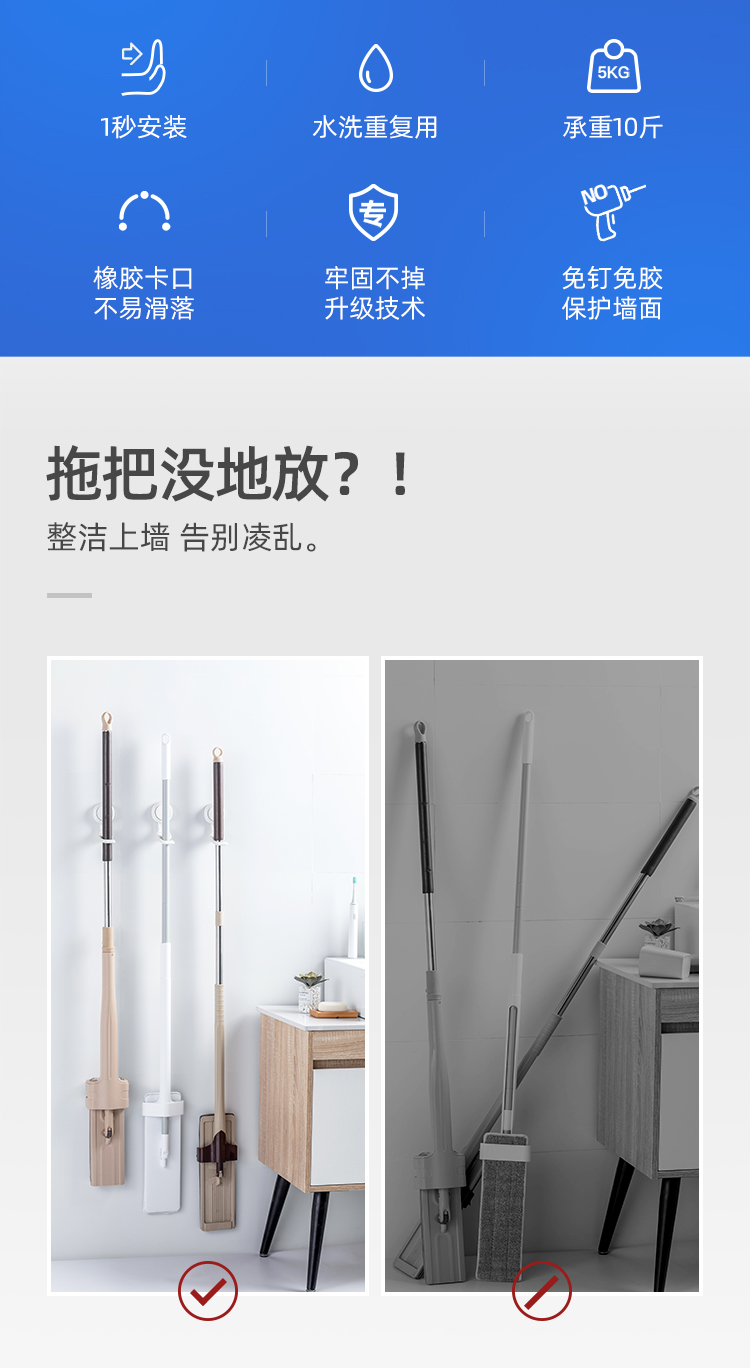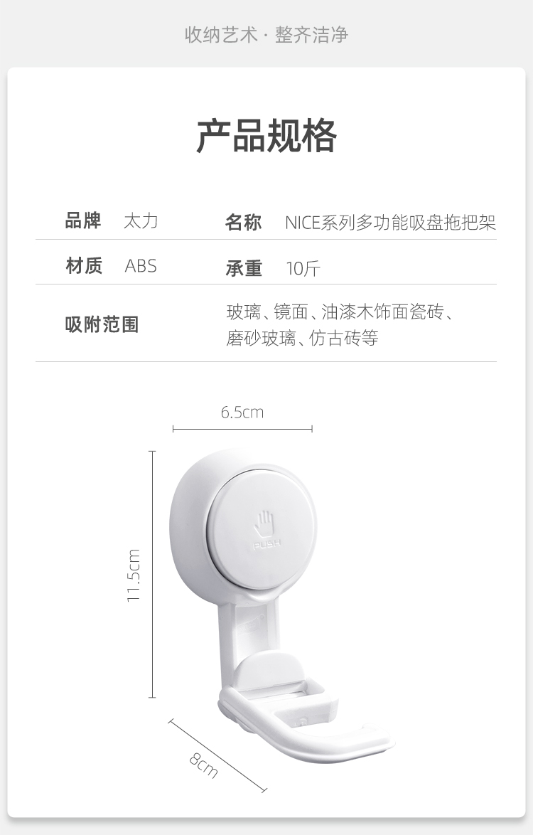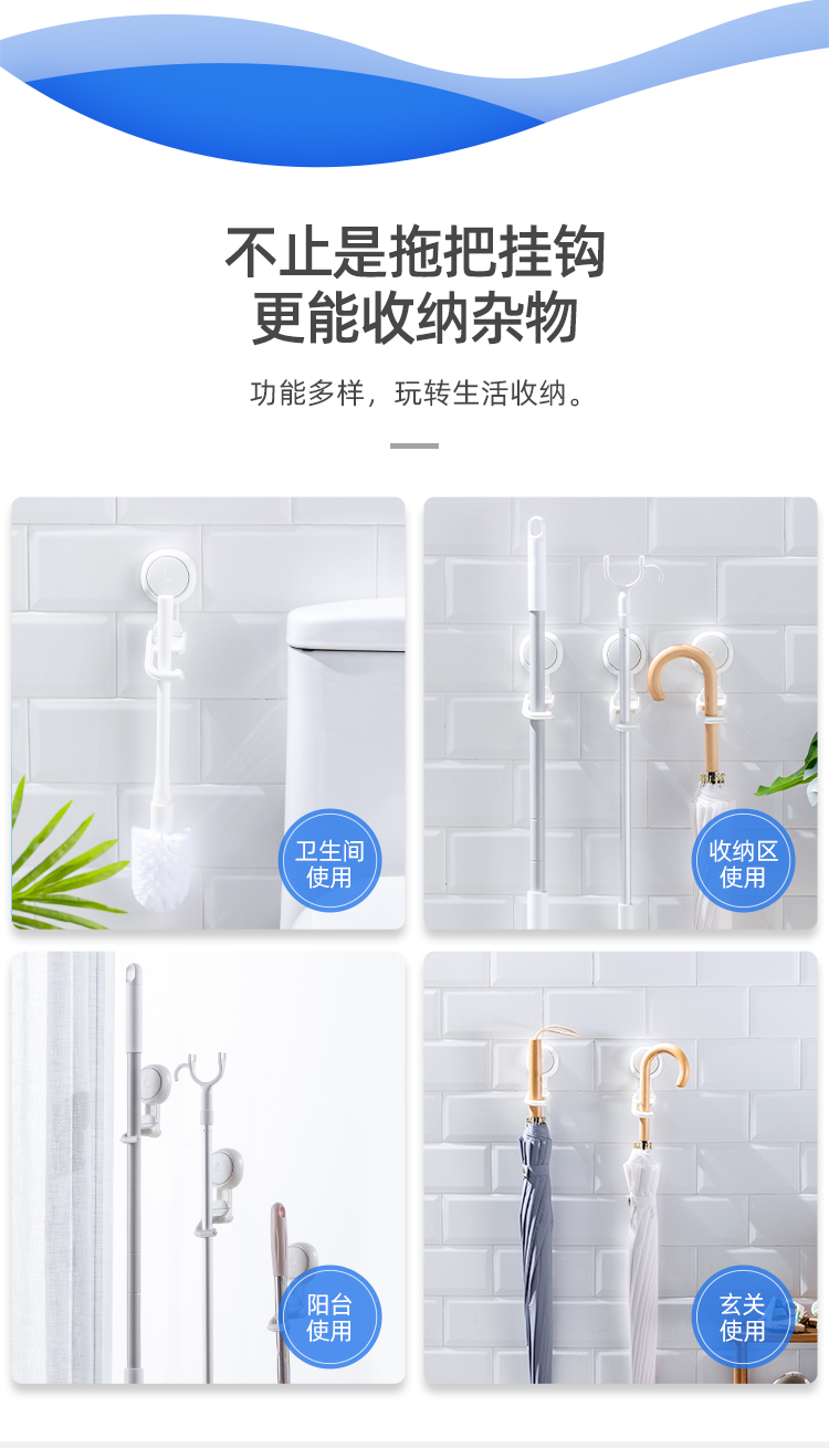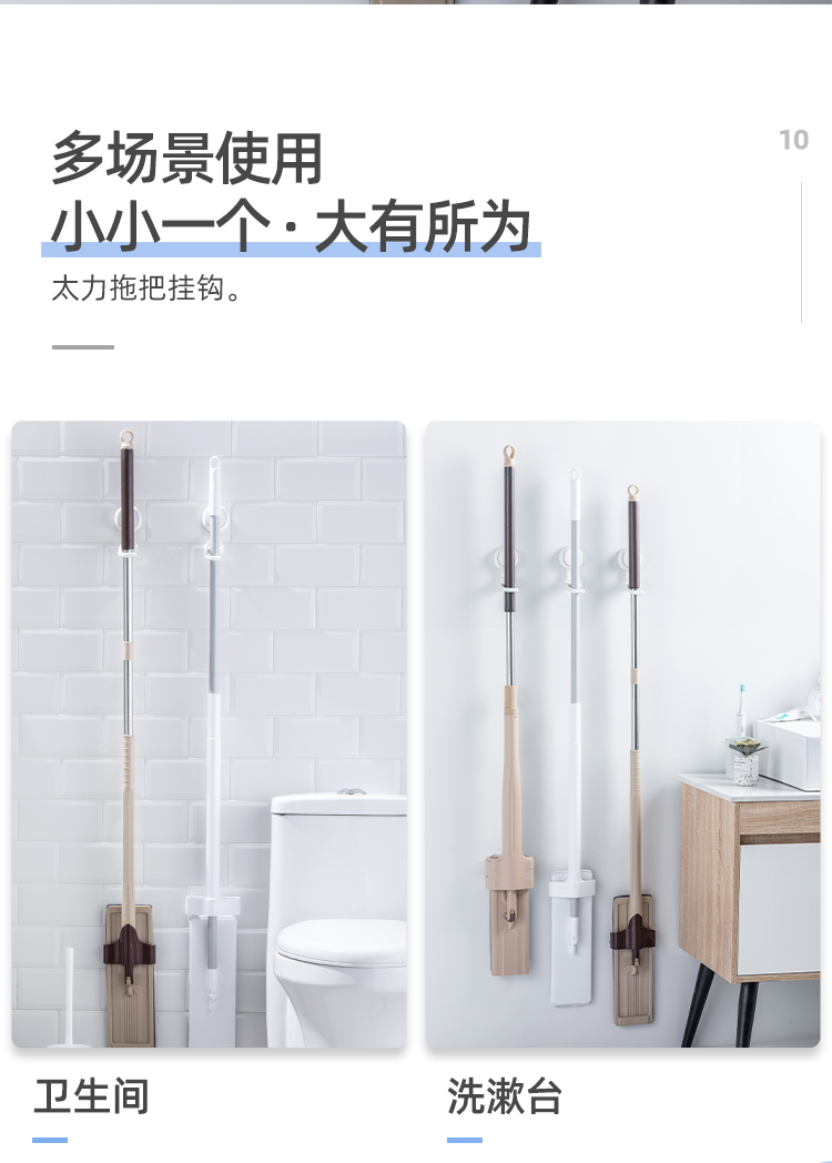 商品名称:太力拖把挂钩免打孔卫生间浴室拖布墩布拖把夹收纳置物架挂架 1个装AW594(单位:个) 白色