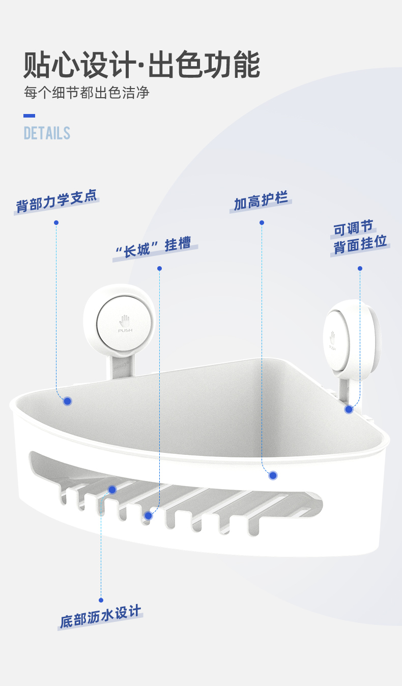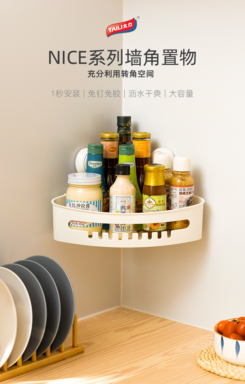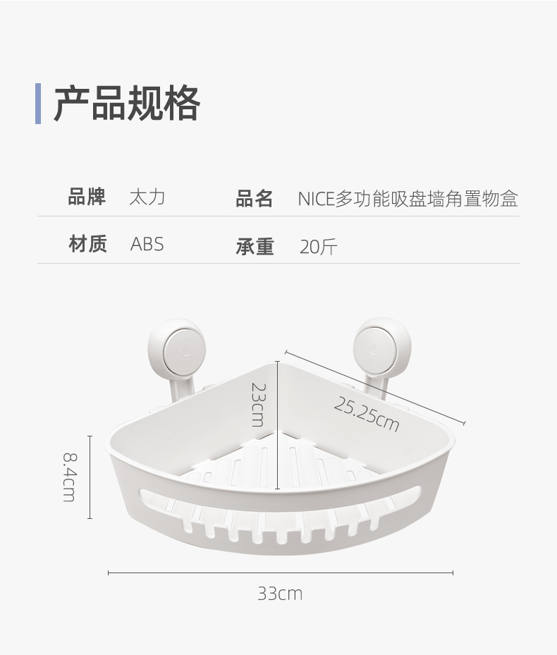 商品名称:太力多功能吸盘墙角置物盒AW778 白色
