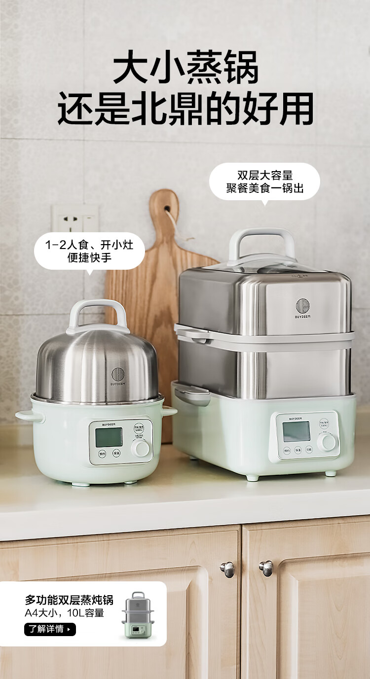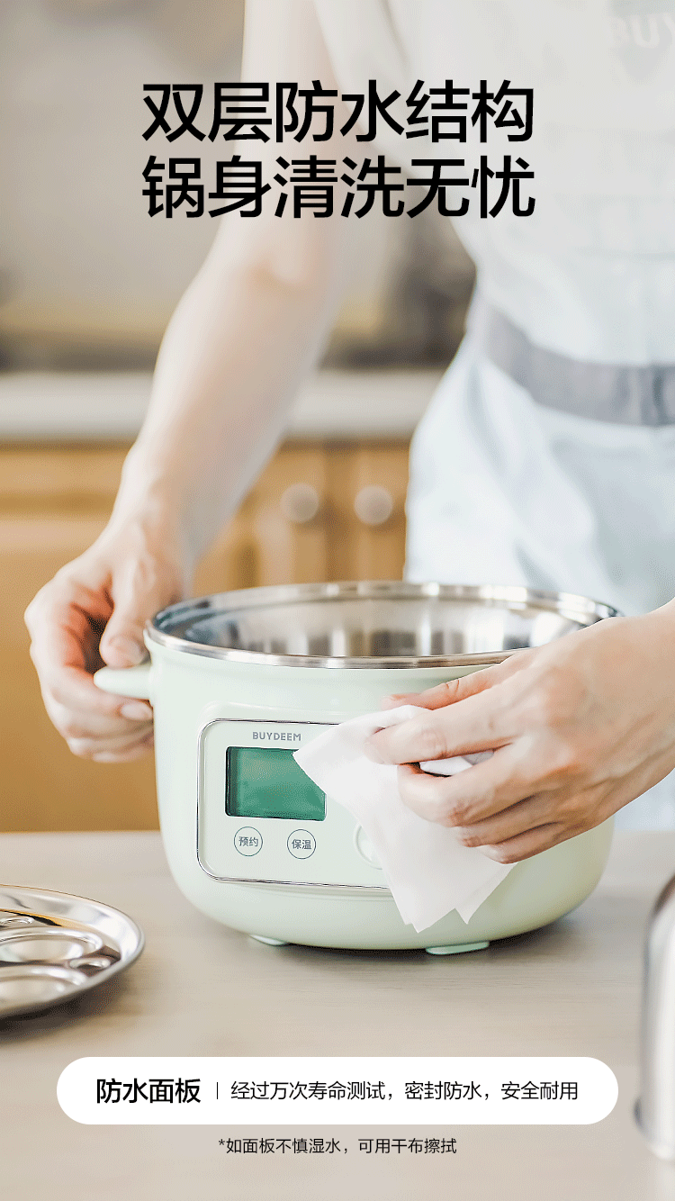 商品名称:北鼎 G37多功能迷你蒸炖煮锅1.5L (单位:个) 浅杉绿