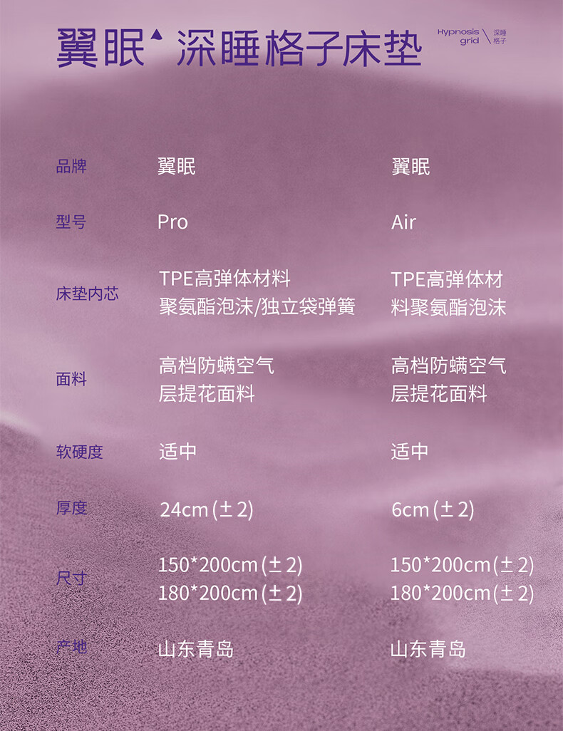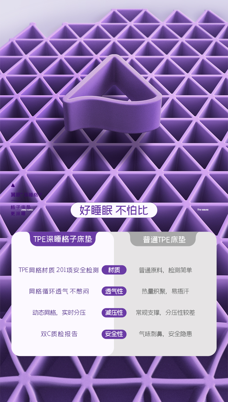 商品名称:翼眠 深睡格子TPE无压床垫F3款 180*200cm