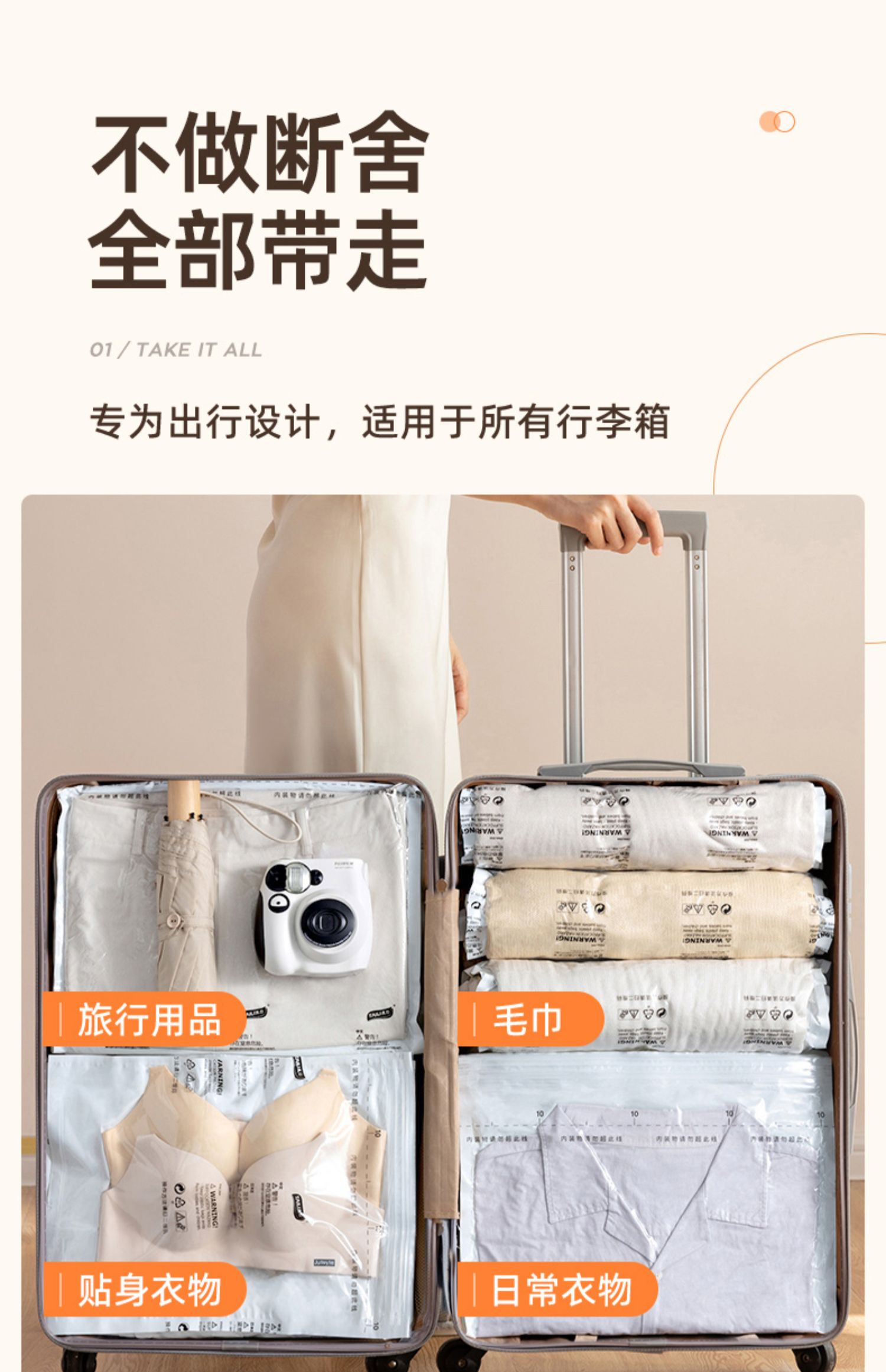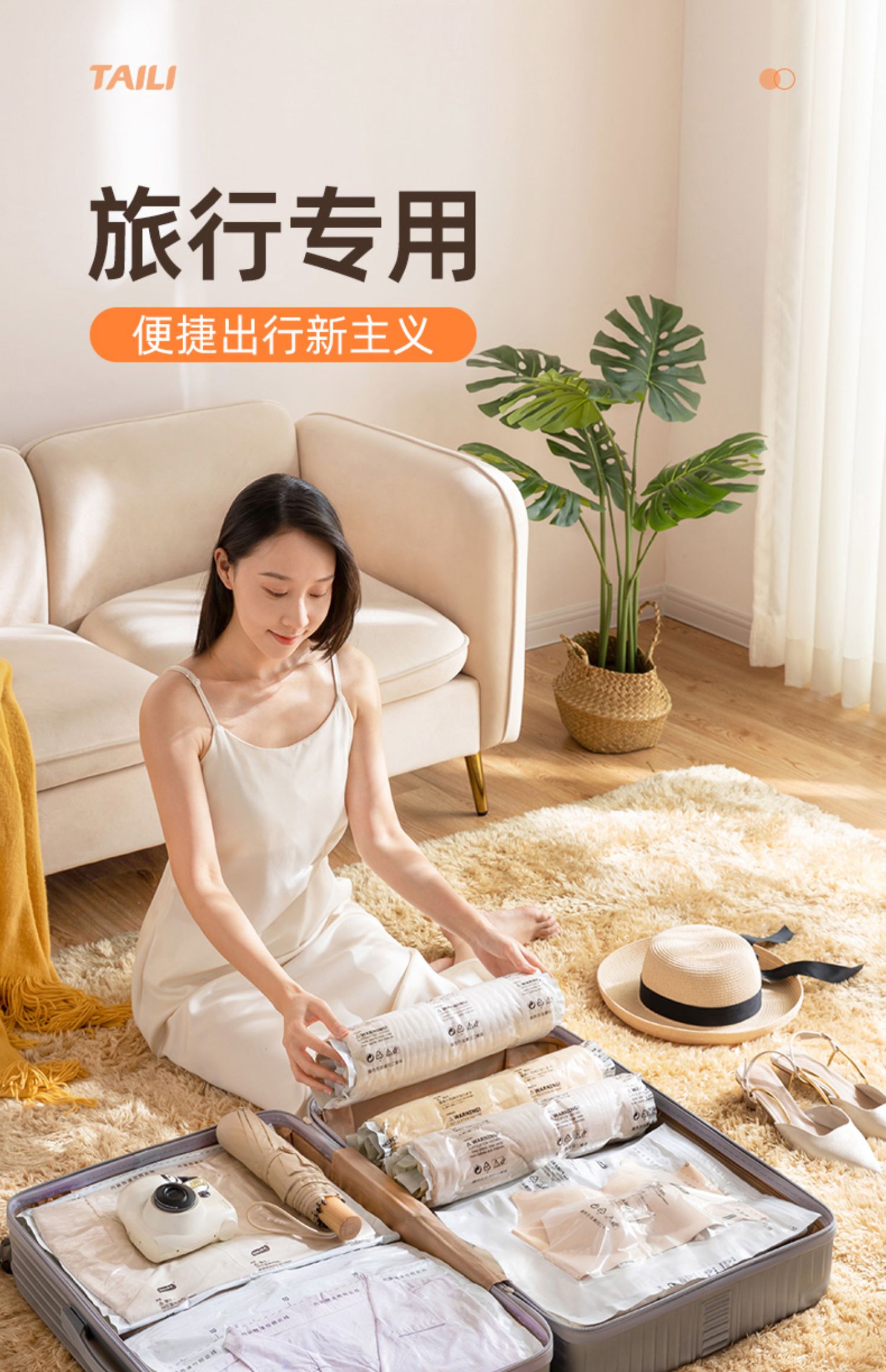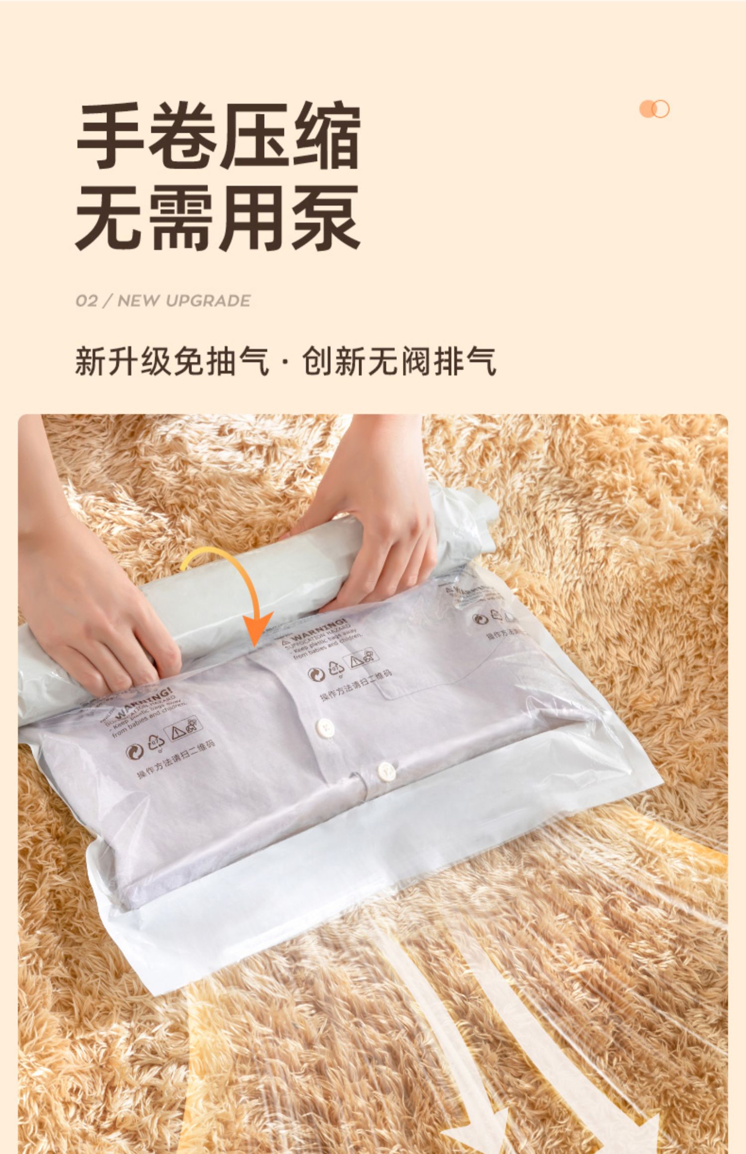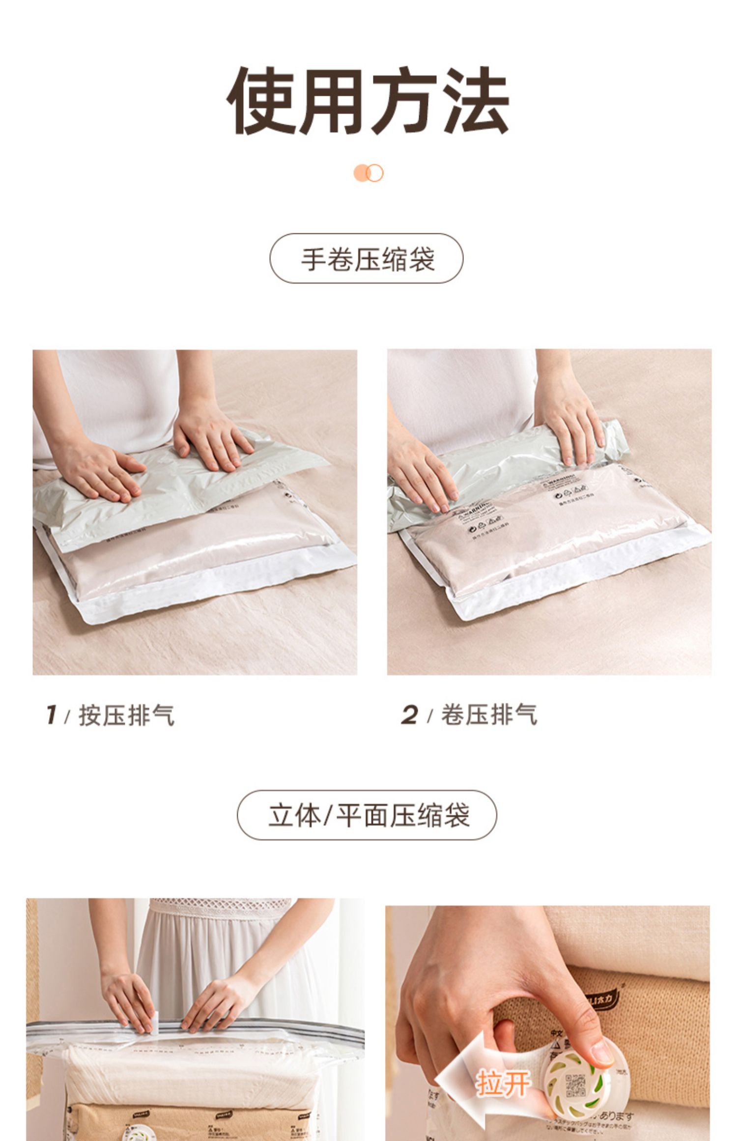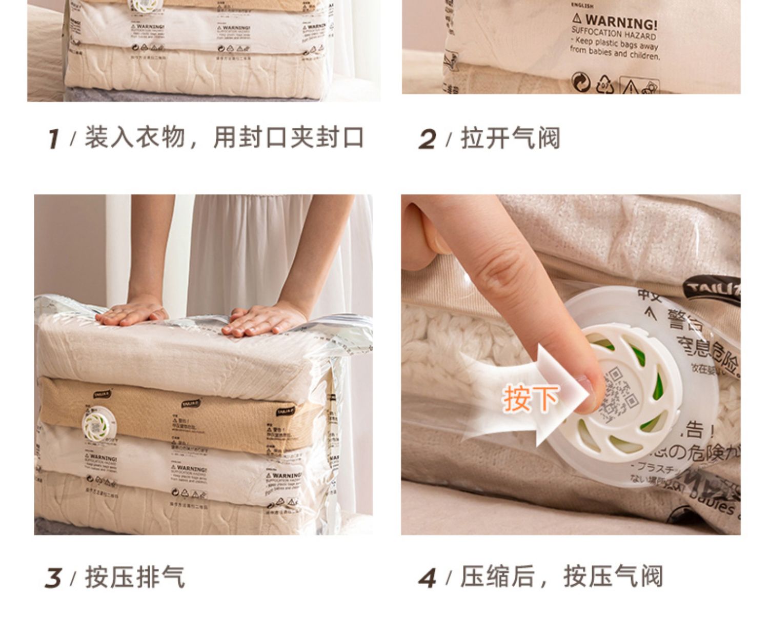 商品名称:太力真空压缩收纳袋大手卷 AY834 两件套 白色