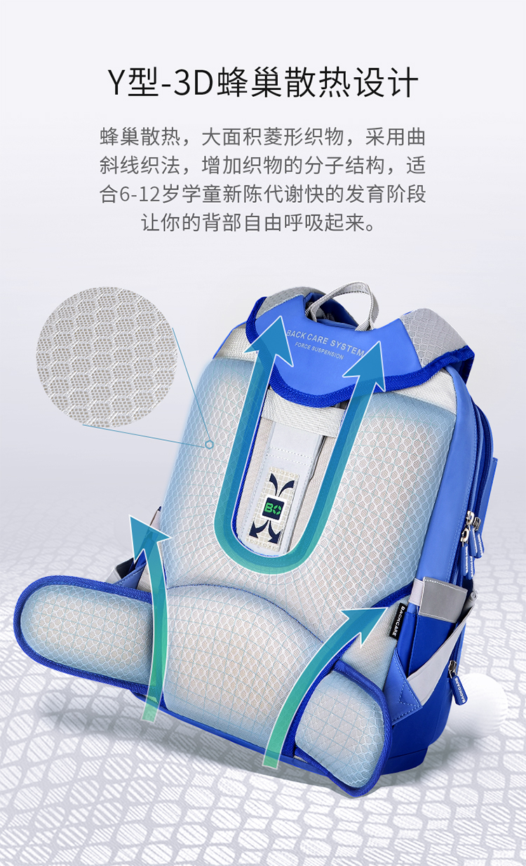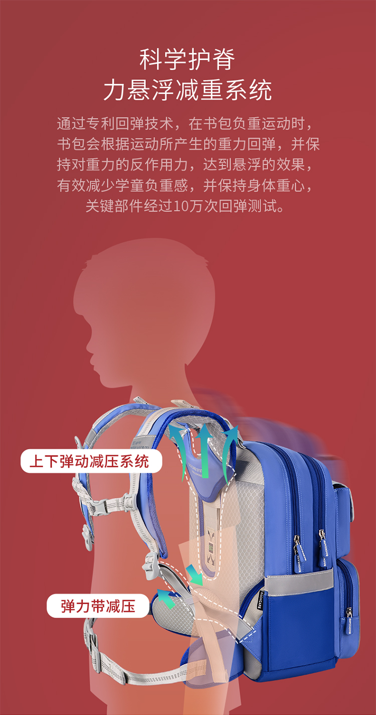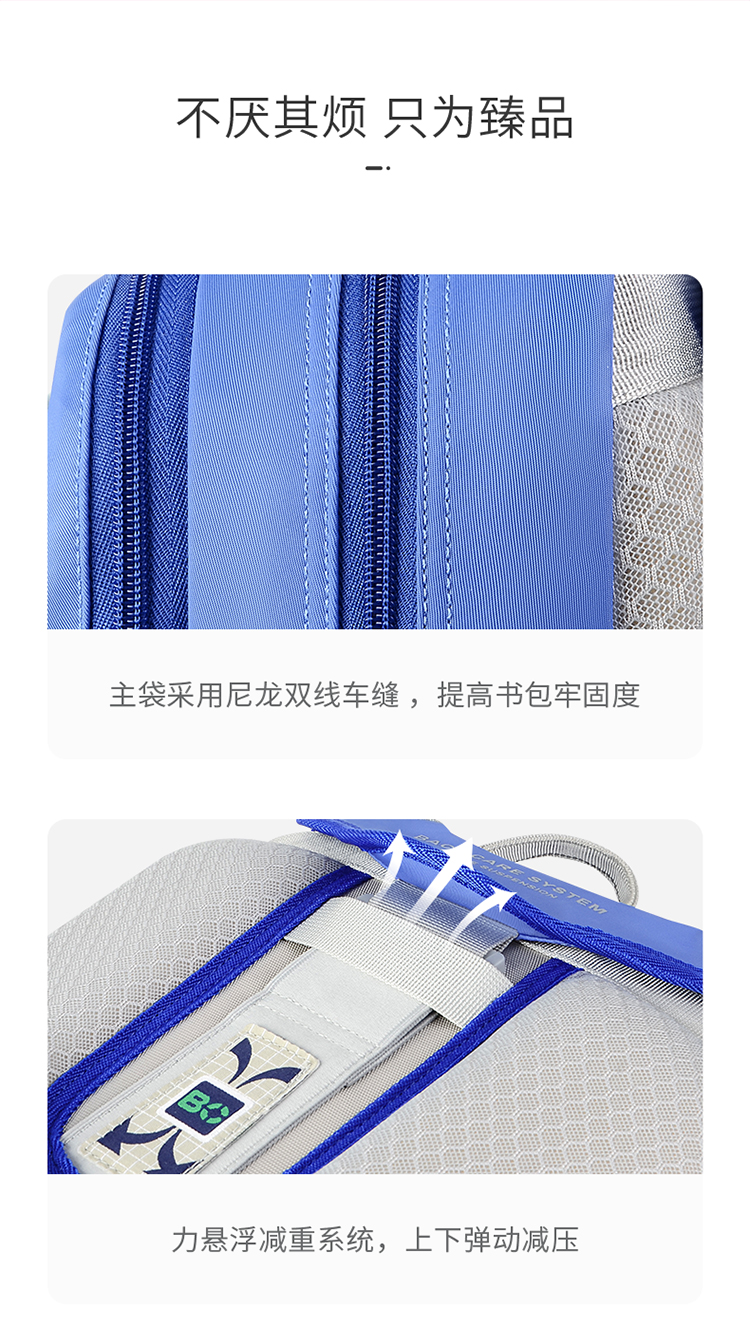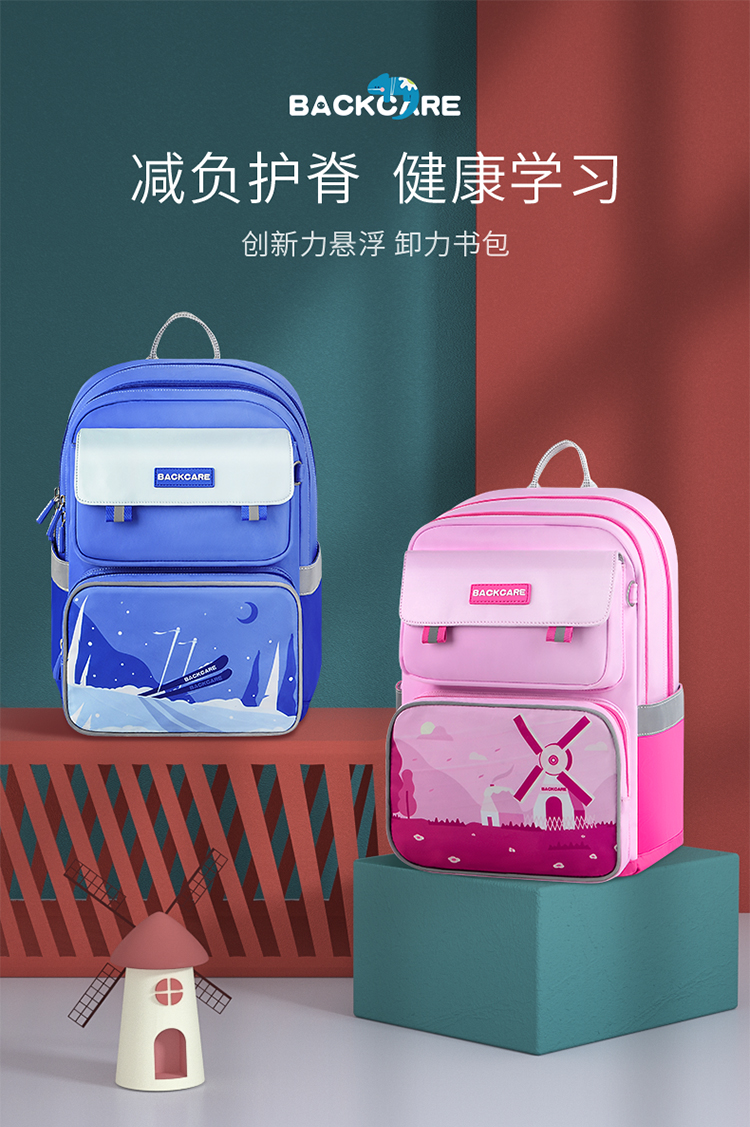 商品名称:BACKCARE力悬浮医学级护脊书包-荷兰印象限定版风车花国爵士粉色 极速山脉爵士宝蓝(大码)
