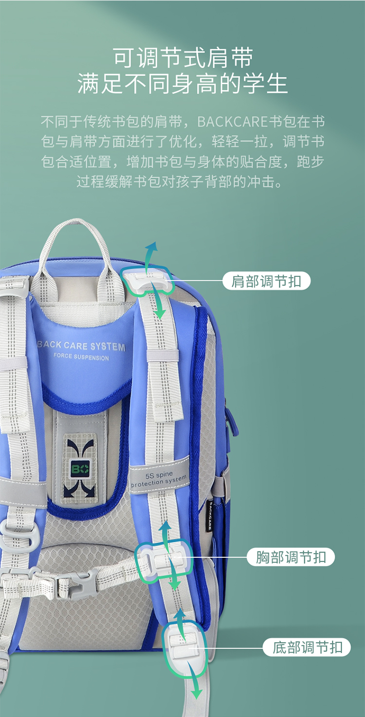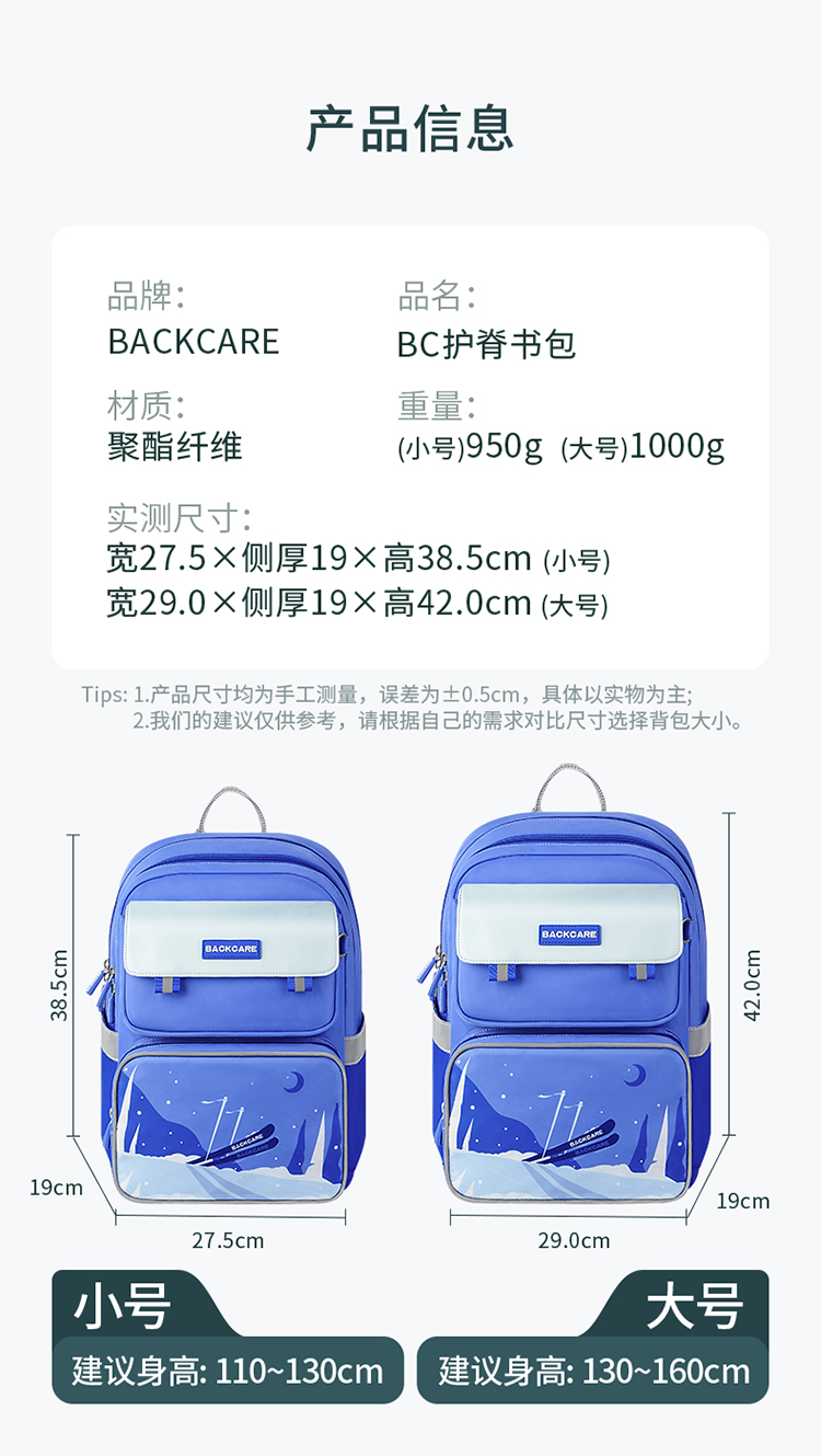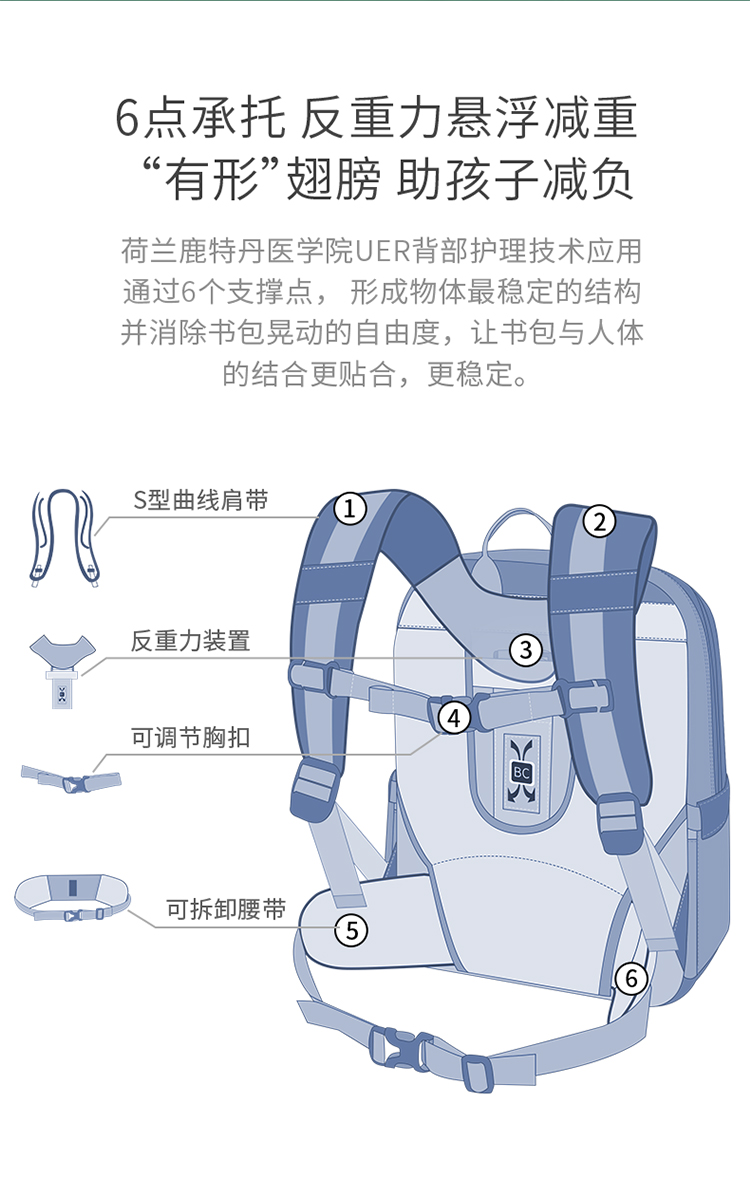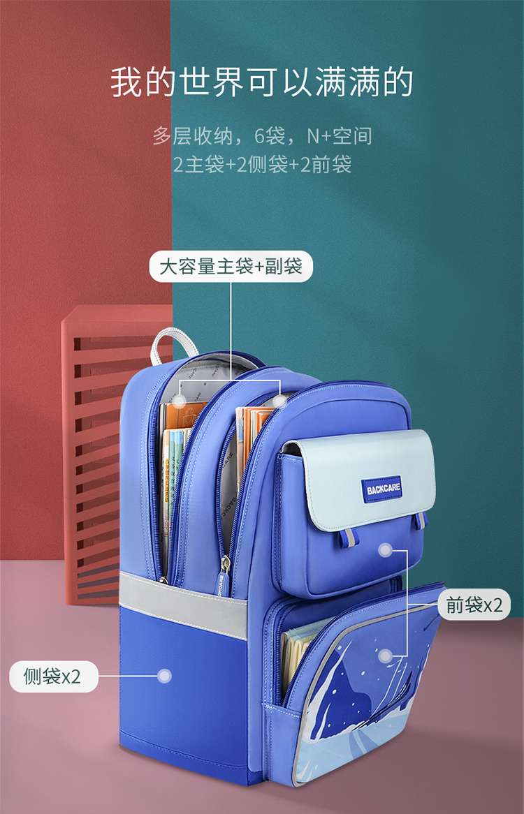 商品名称:BACKCARE力悬浮医学级护脊书包-荷兰印象限定版风车花国爵士粉色 极速山脉爵士宝蓝(大码)