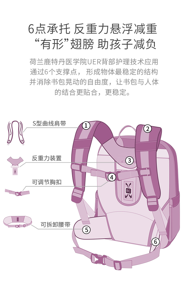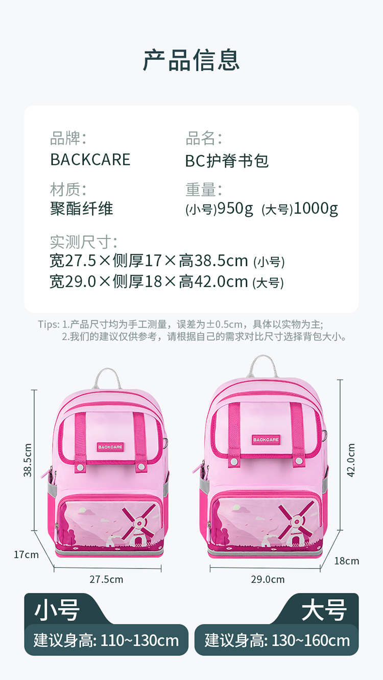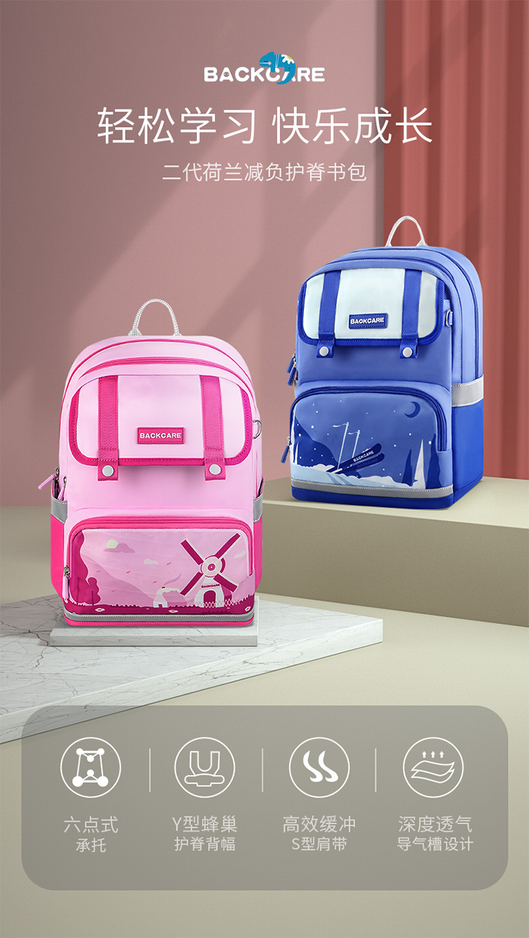 商品名称:BACKCARE力悬浮医学级护脊书包-荷兰印象限定版风车花国骑士粉色 极速山脉骑士宝蓝(小码)