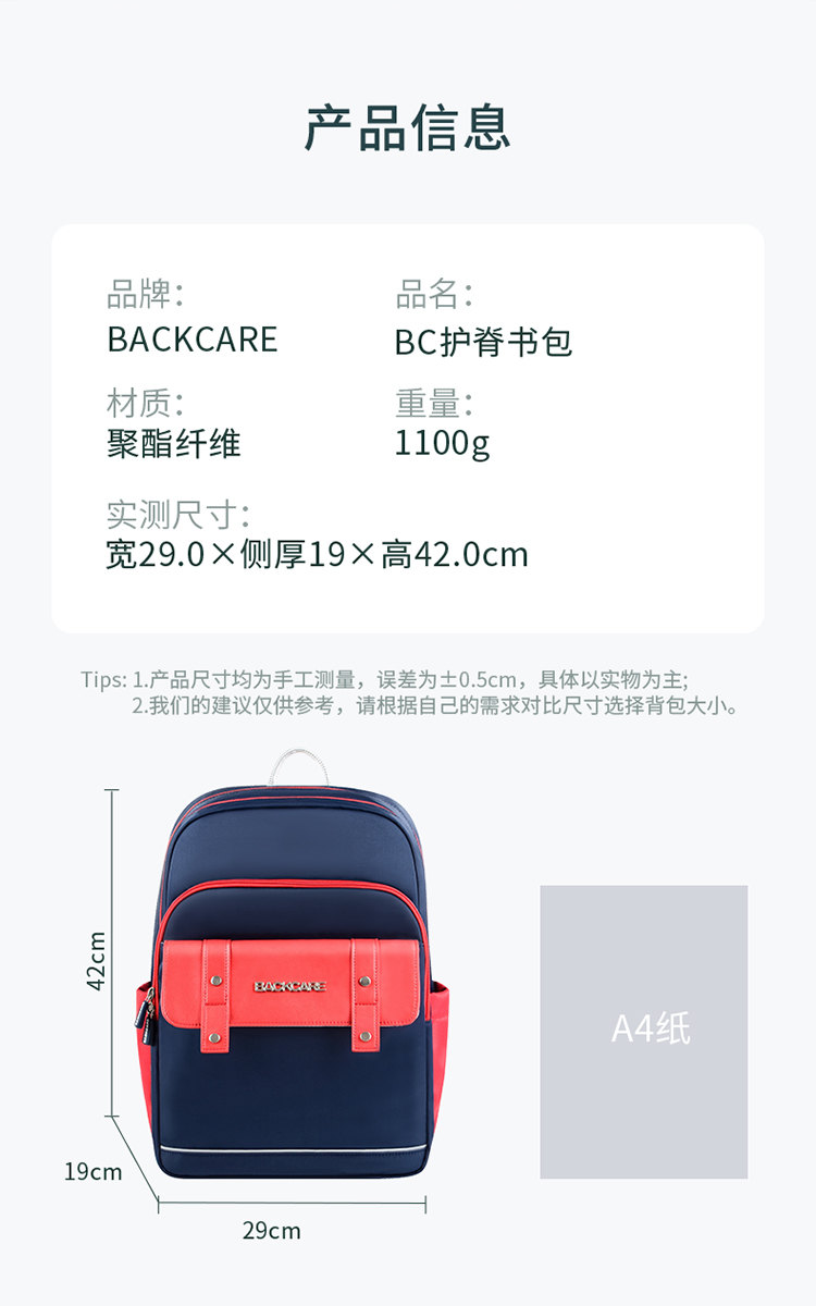 商品名称:BACKCARE力悬浮医学级护脊书包-北欧风范限定版 红色