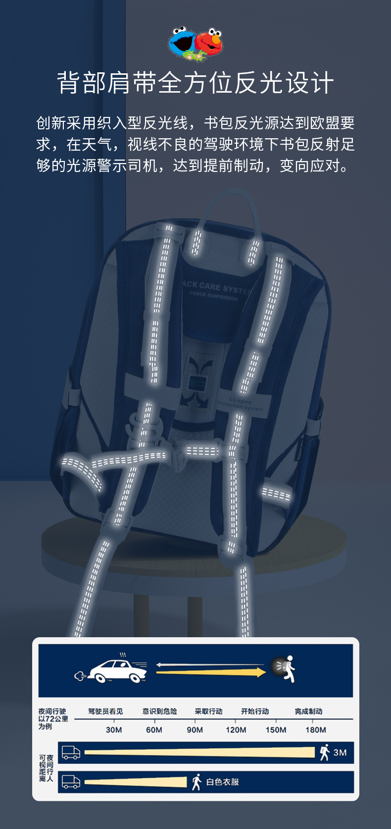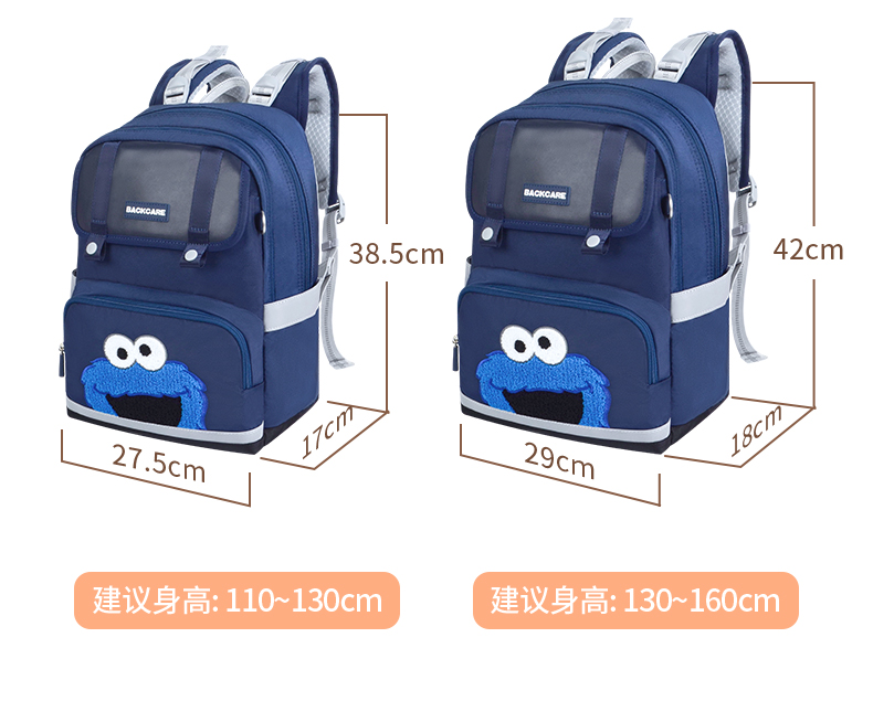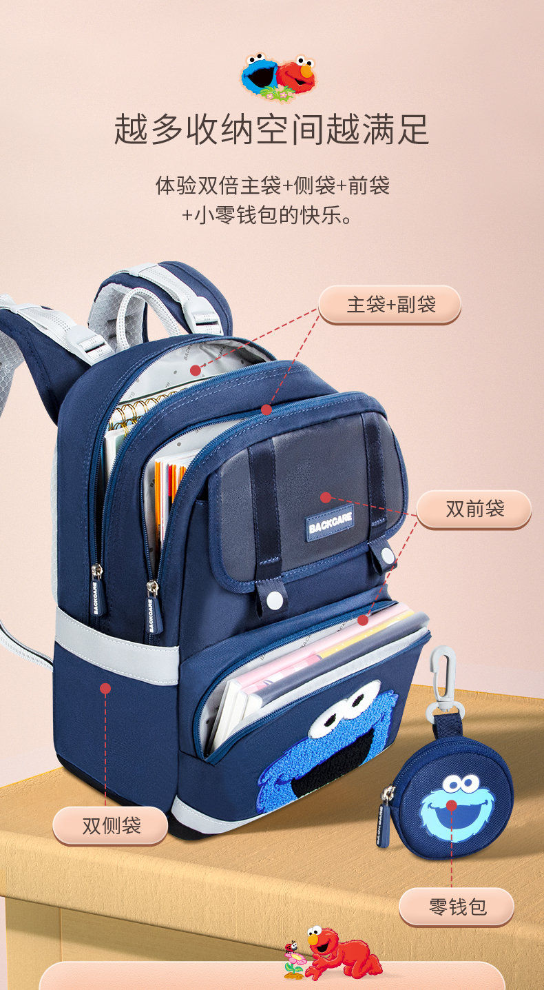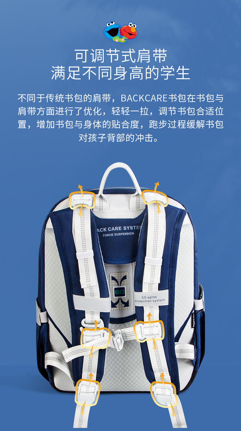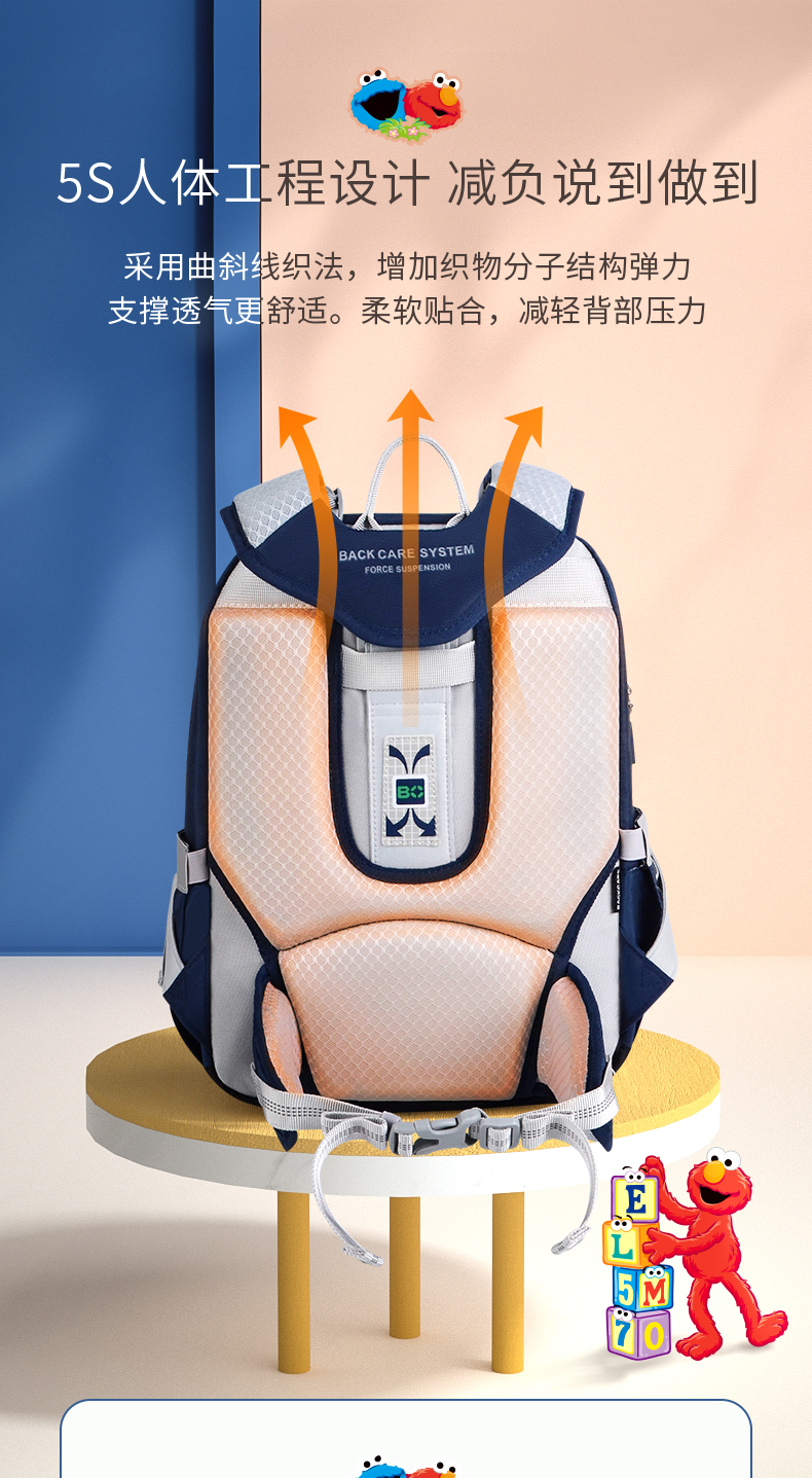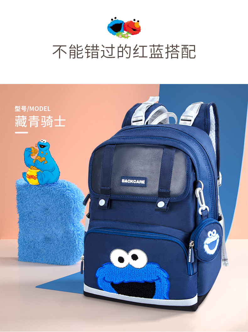 商品名称:BACK CARE芝麻街联名护脊书包骑士款(单位:个) 小号藏青B22-112A