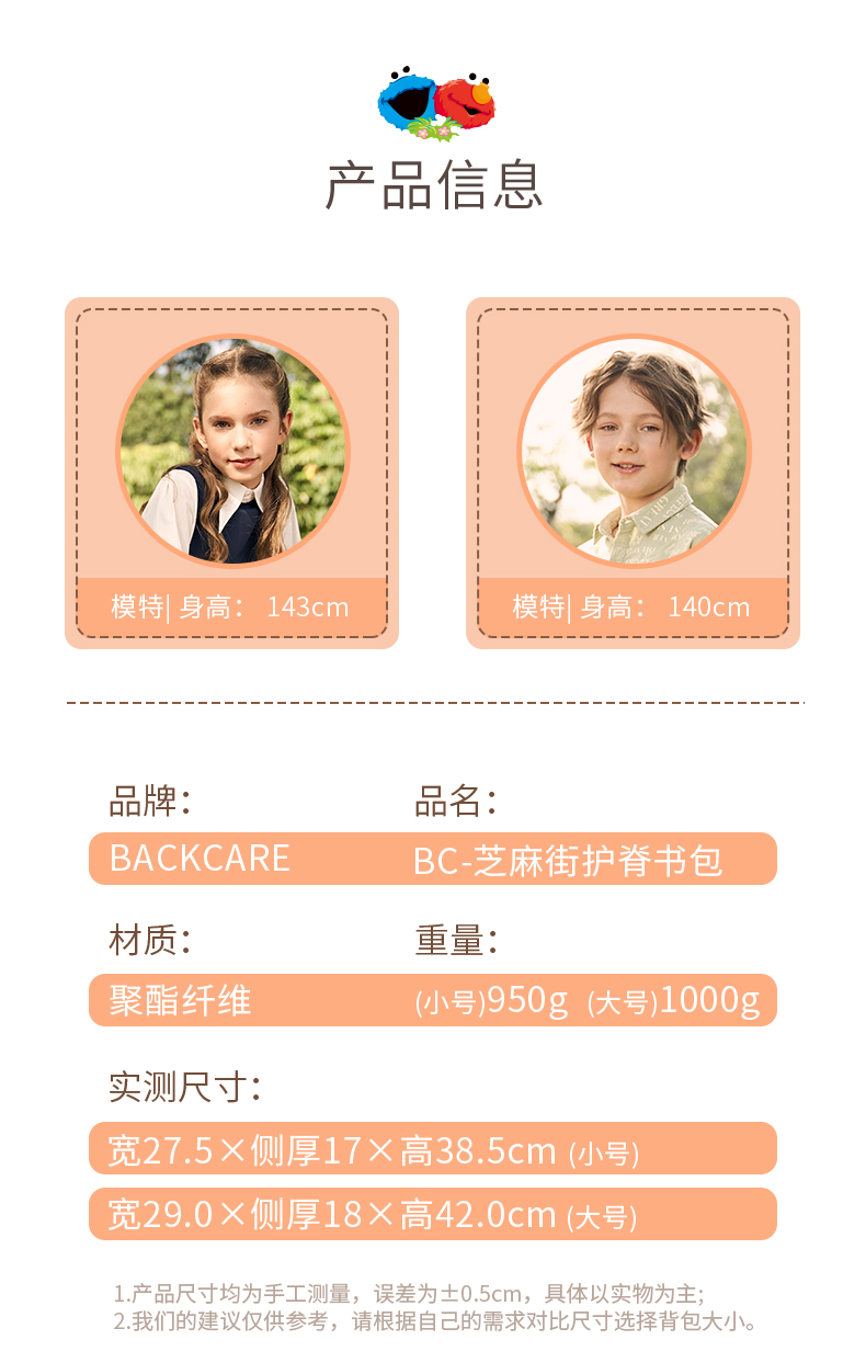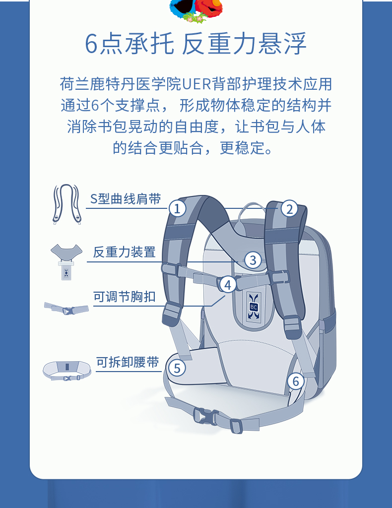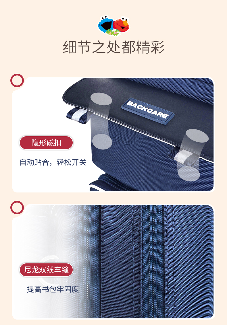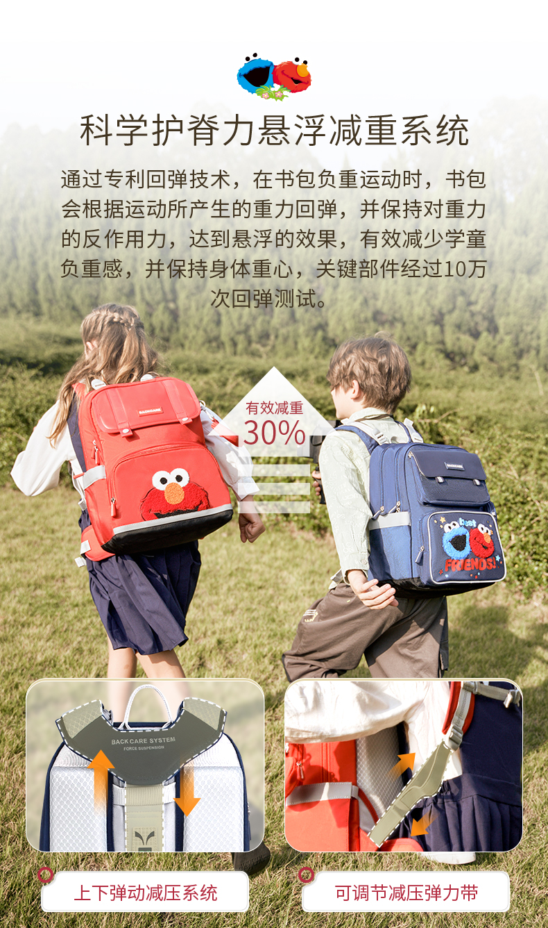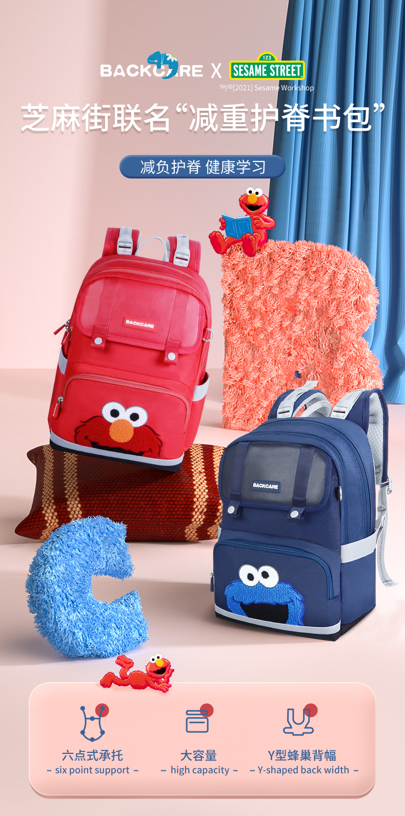 商品名称:BACK CARE芝麻街联名护脊书包骑士款(单位:个) 小号藏青B22-112A