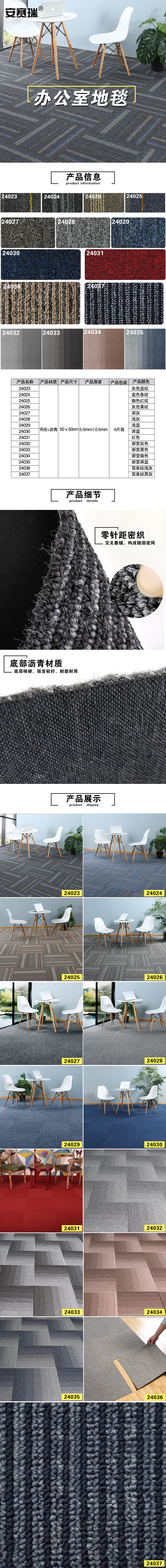 商品名称:安赛瑞 方块拼接地毯 (4片装)拼接办公室地毯 酒店公司工程写字楼商用地毯 单片50×50cm 双条纹浅灰 24036 个 灰色