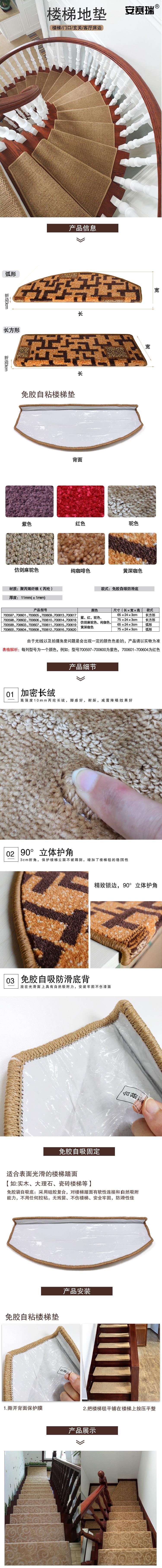 商品名称:安赛瑞楼梯地垫 75×24×3cm 免胶自贴楼梯防滑 长方形 驼色祥云 700606 个 奶茶杏