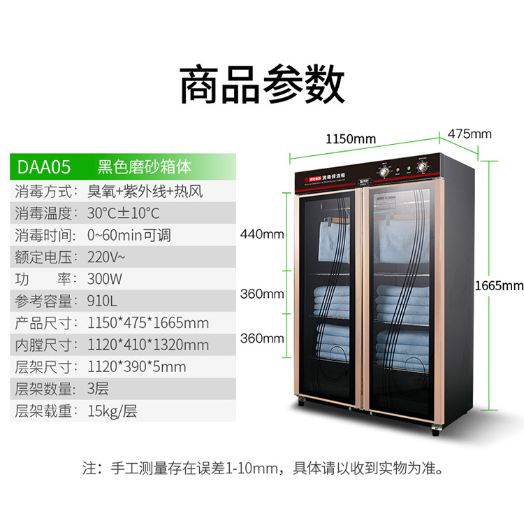 商品名称:圣托(Shentop)大容量酒店毛巾衣物消毒柜 商用立式双开门臭氧紫外线 910L消毒柜 DAA05 一台 黑色