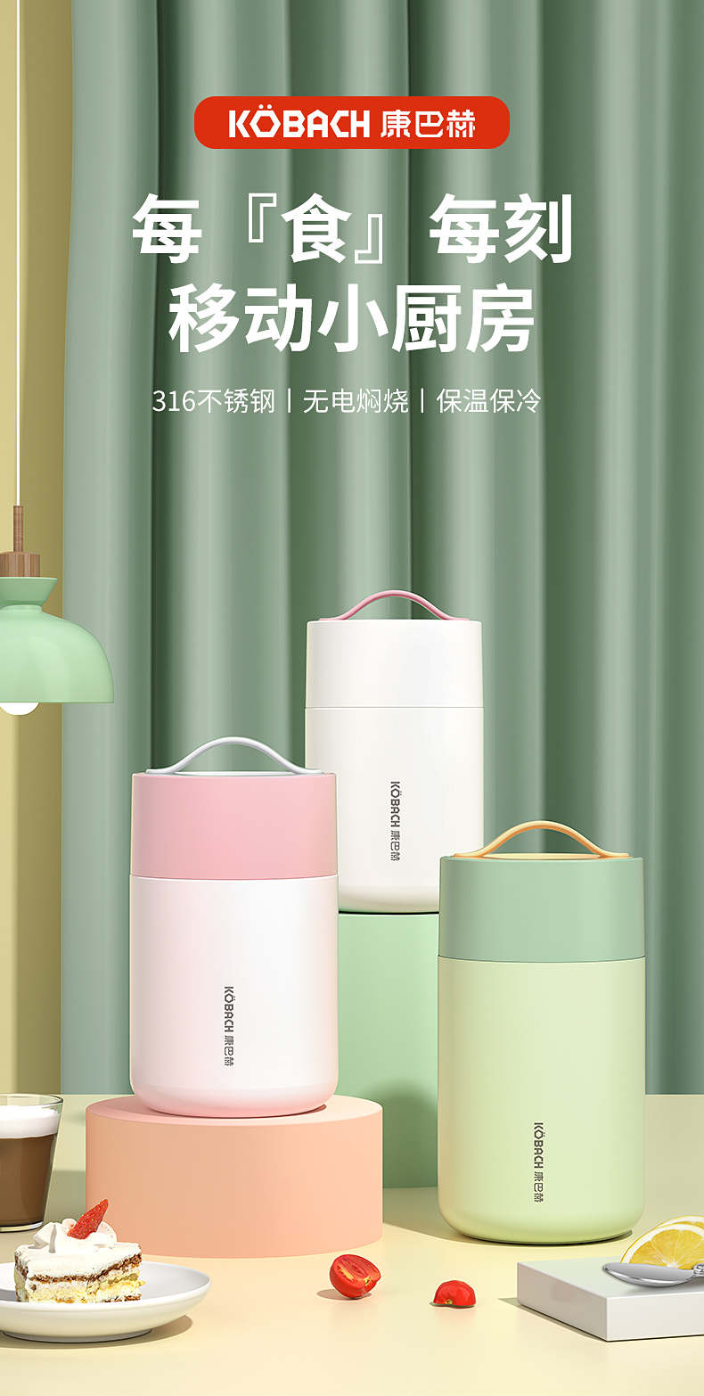 商品名称:康巴赫软提手撞色焖烧杯800ML草莓粉 KH-T80B02【14050384】件 草莓粉