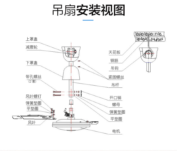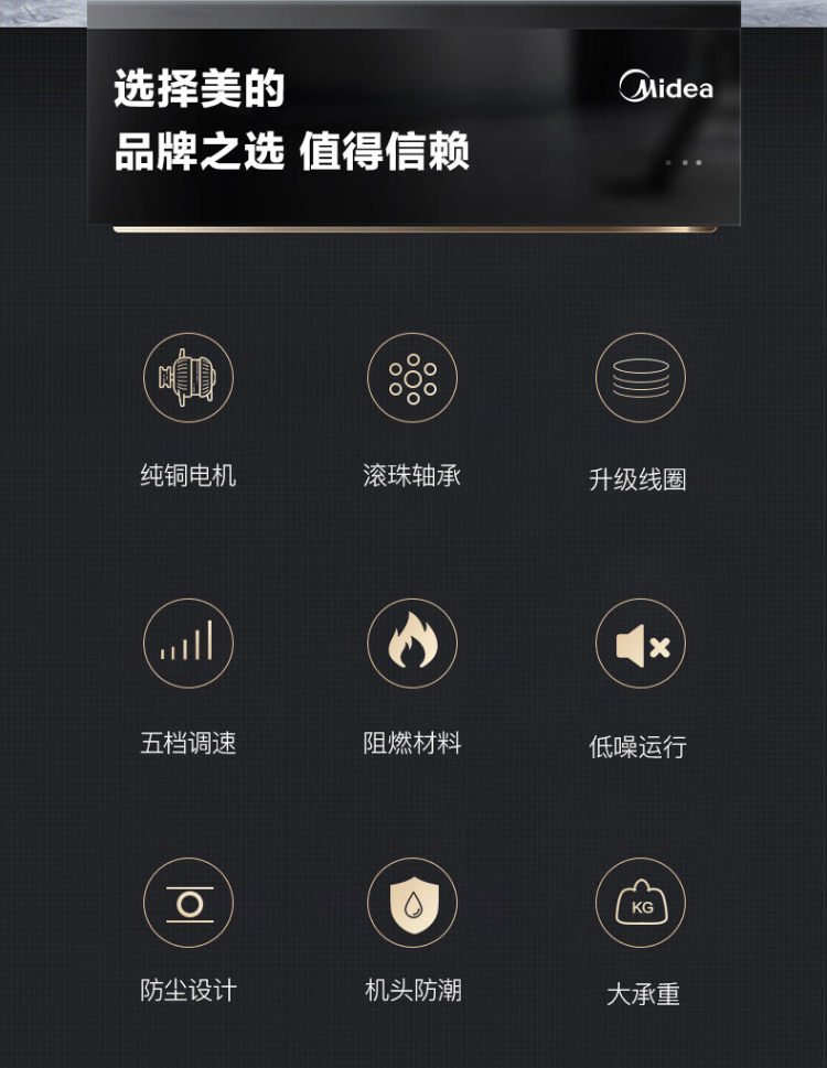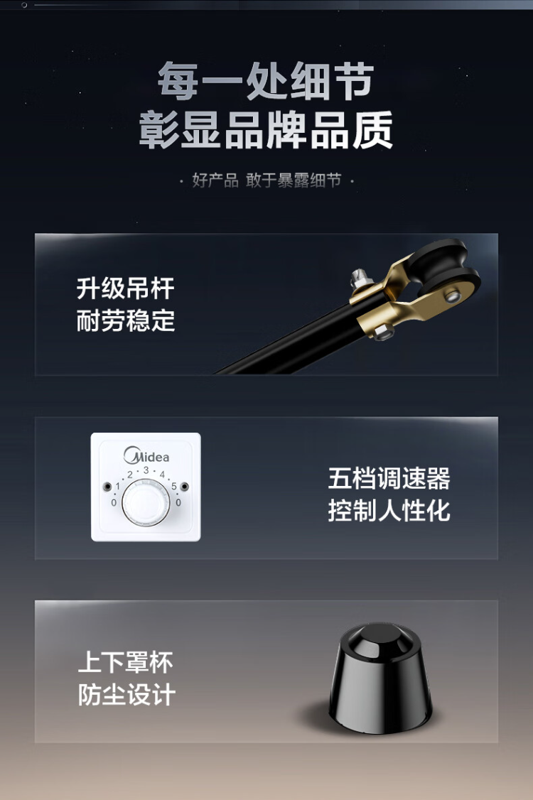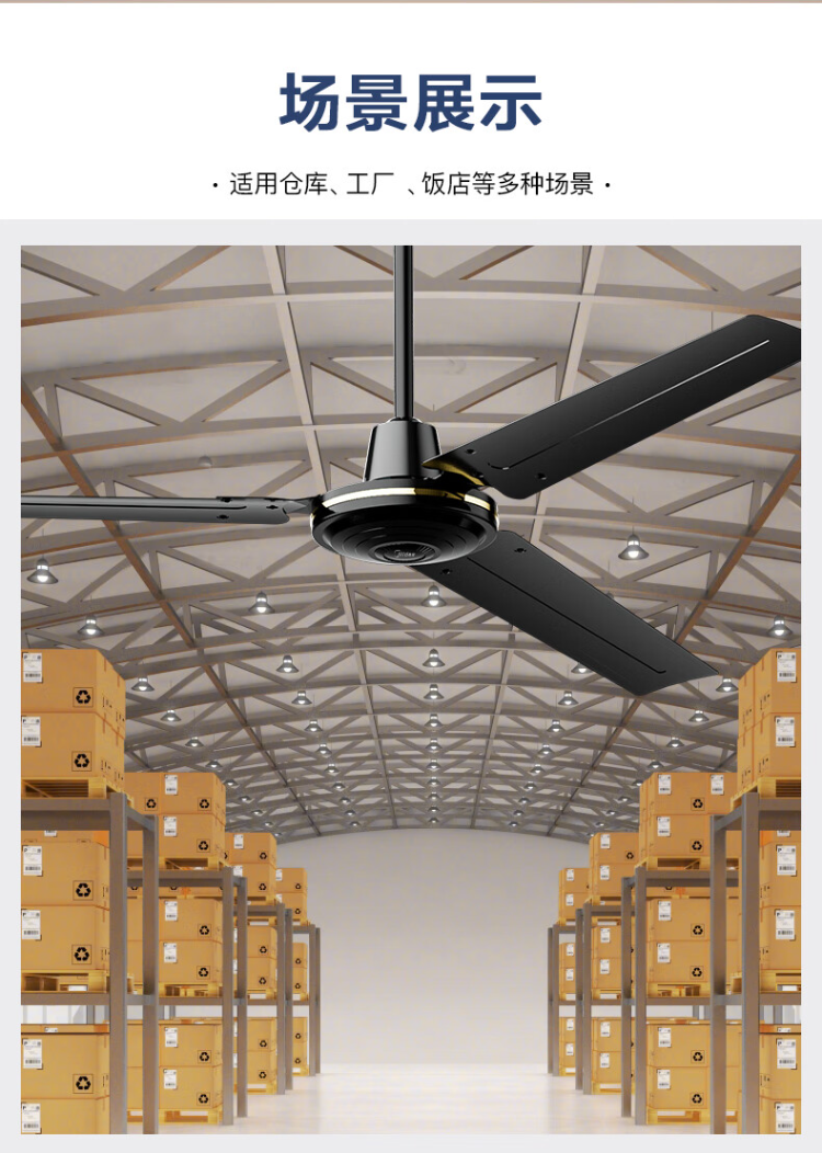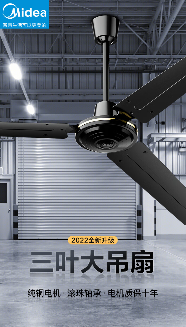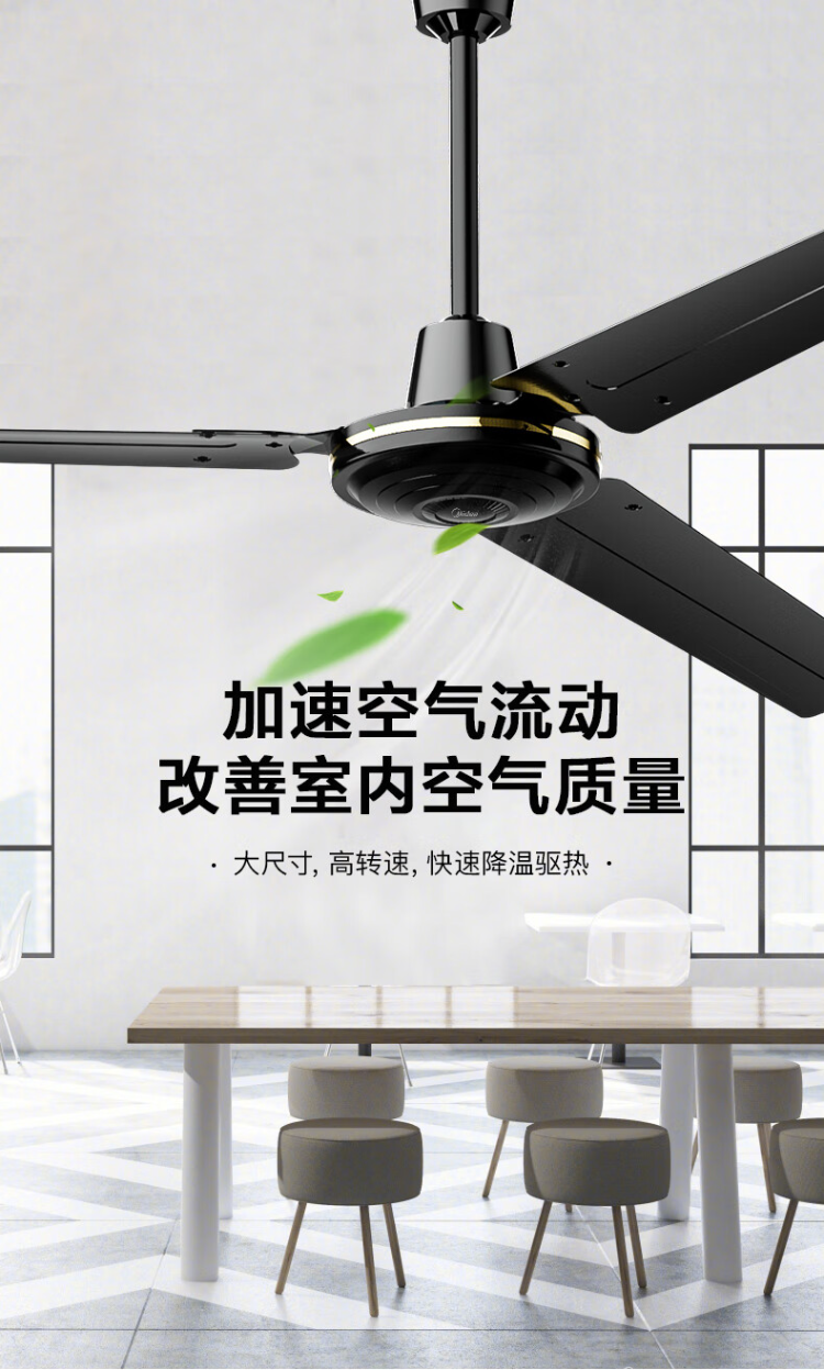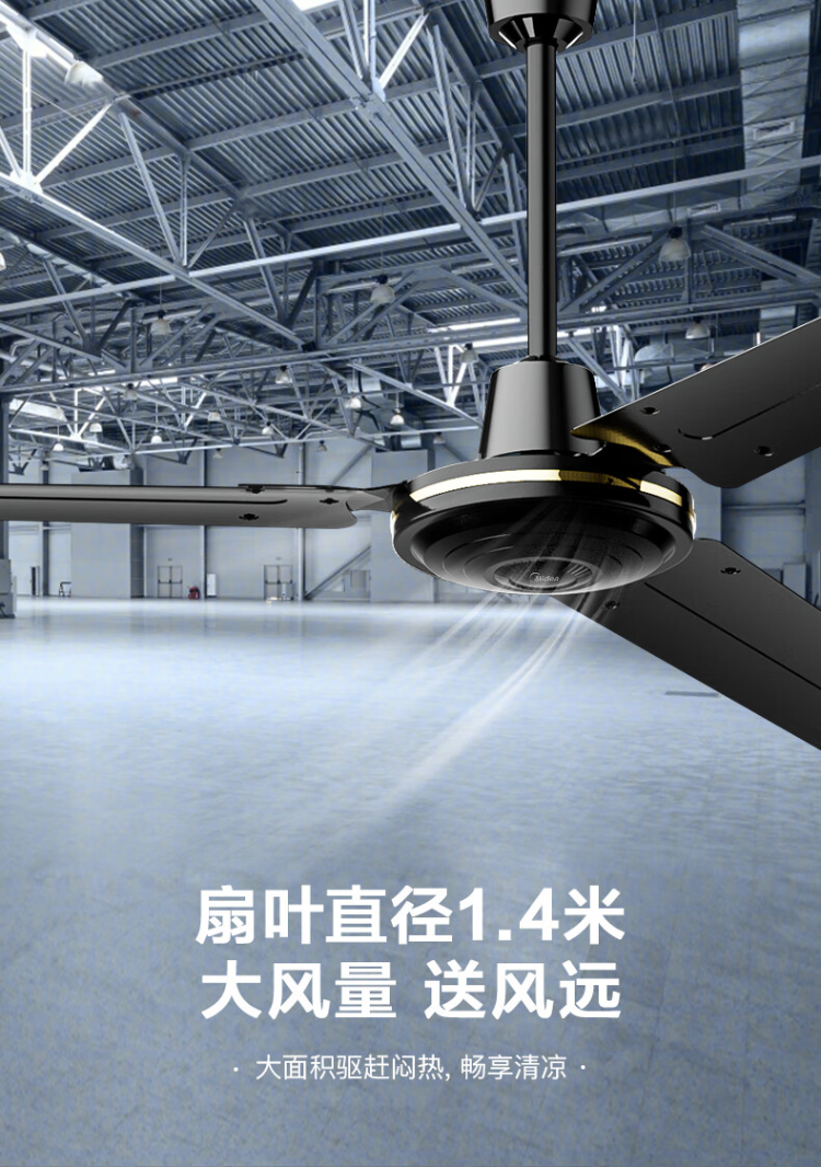 商品名称:美的(Midea)FC140-EA吊扇56寸三叶大风力工业电风扇家用轻音工厂宿舍楼顶扇 (单位:台) 黑色