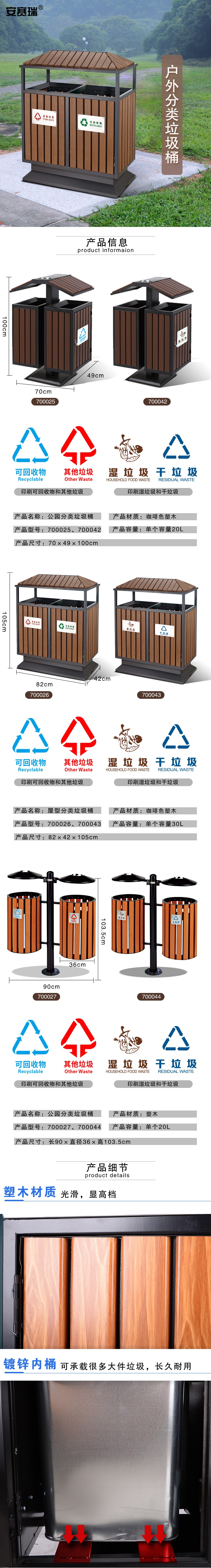 商品名称:安赛瑞 户外分类垃圾桶 公园景区垃圾桶 20L×2 户外分类市政环卫果皮箱垃圾箱室外700025 个 褐色