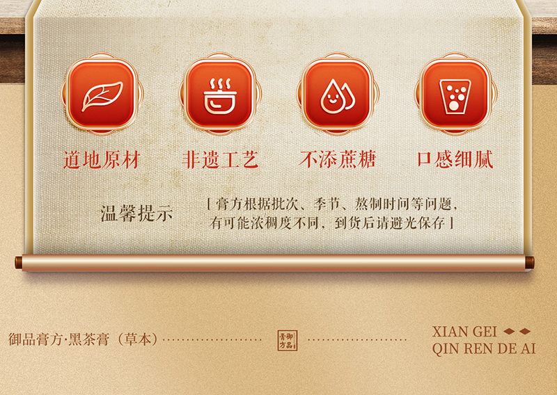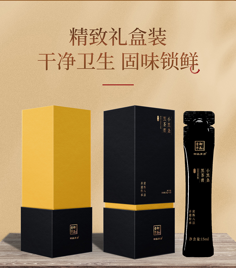 商品名称:御品膏方黑茶膏15g*10条/盒全国配送(港澳台,新疆,等疫情地区除外) 曜石黑