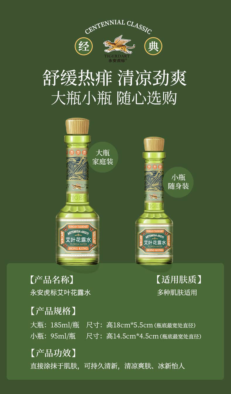 商品名称:永安虎标 RA04090011艾叶花露水95ml(单位:瓶) 绿色