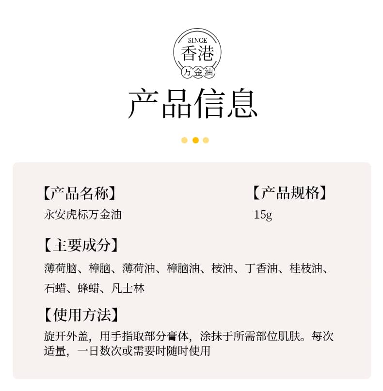 商品名称:永安虎标 万金油 香港经典 15g 黄色(单位:盒)