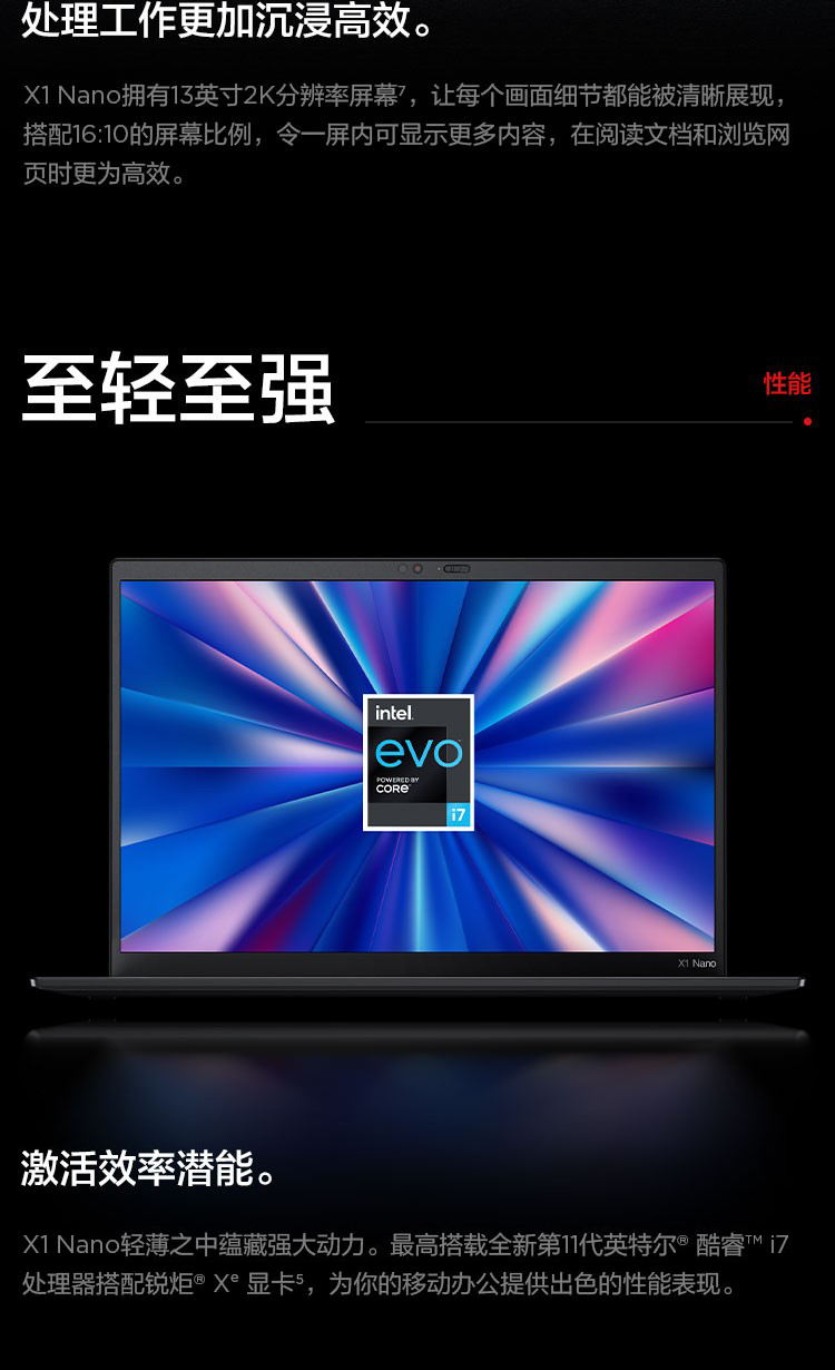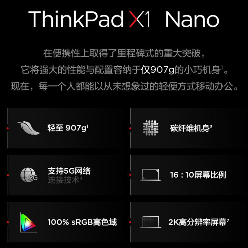 商品名称:联想笔记本电脑ThinkPad X1 Nano(00CD) 12代酷睿13英寸英特尔Evo平台 i7-1260P 16G 512G 2K 4G 台 黑色