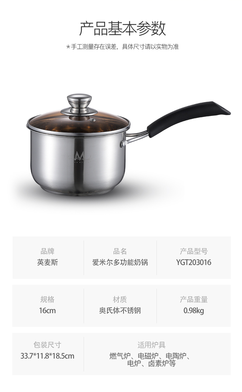 商品名称:英麦斯 爱米尔多功能奶锅YGT203016 个 钢色