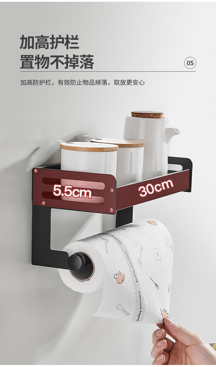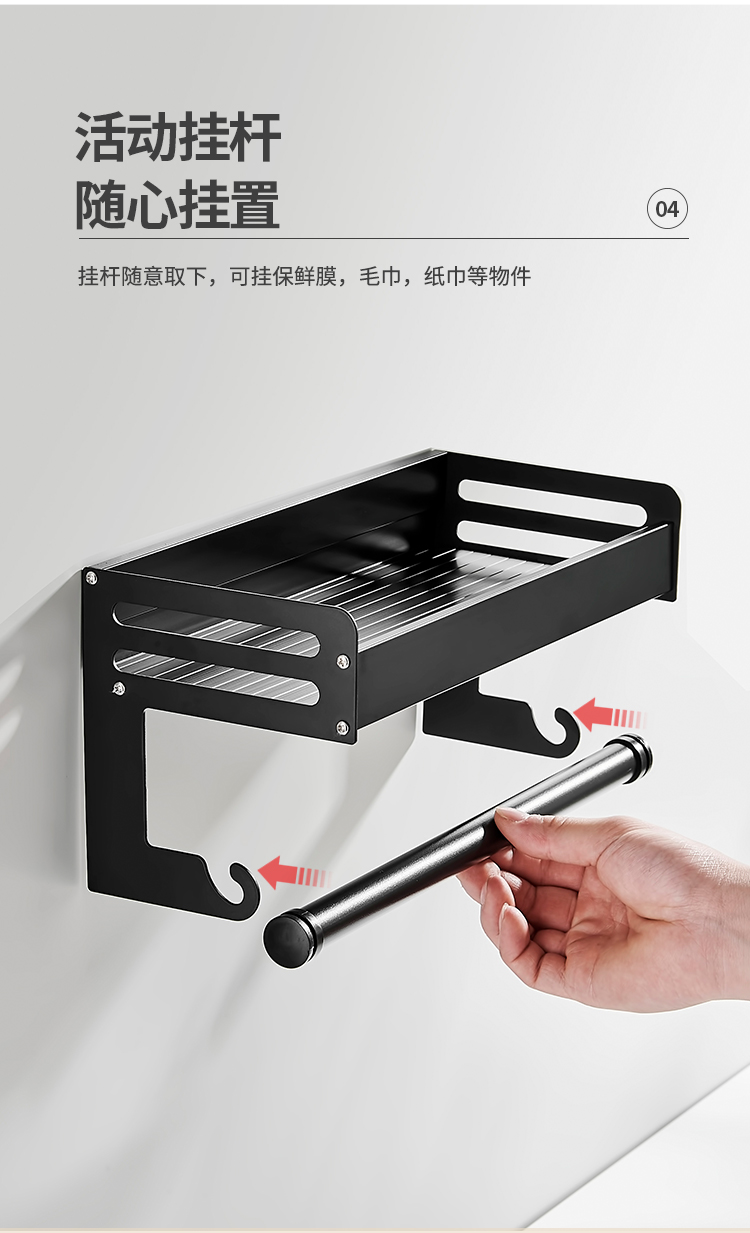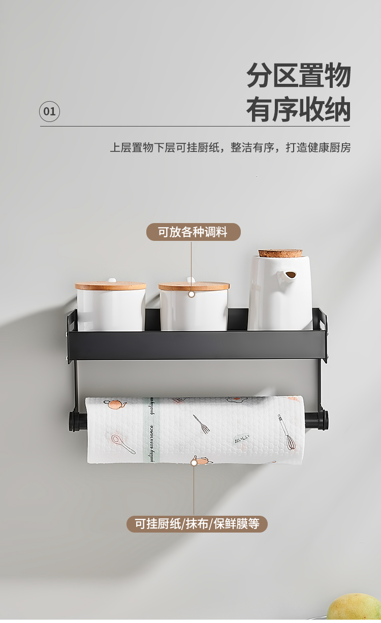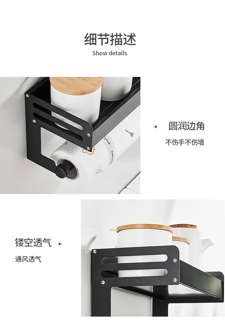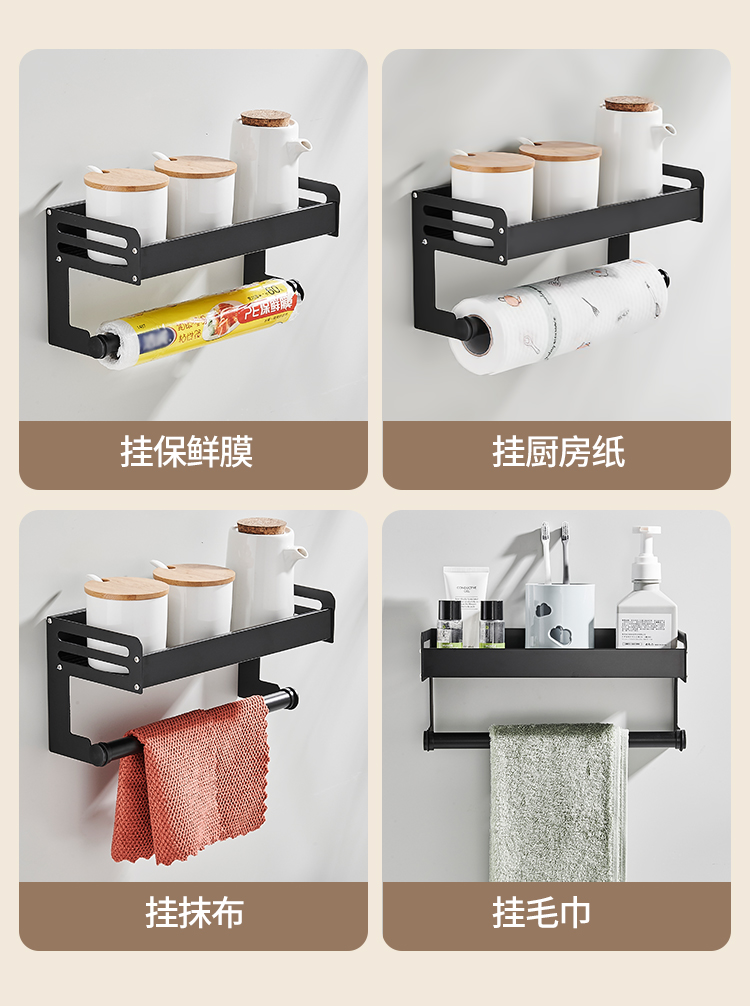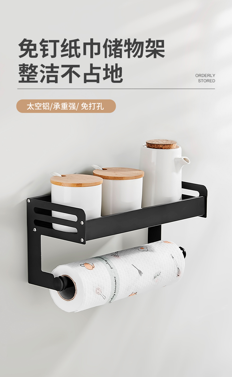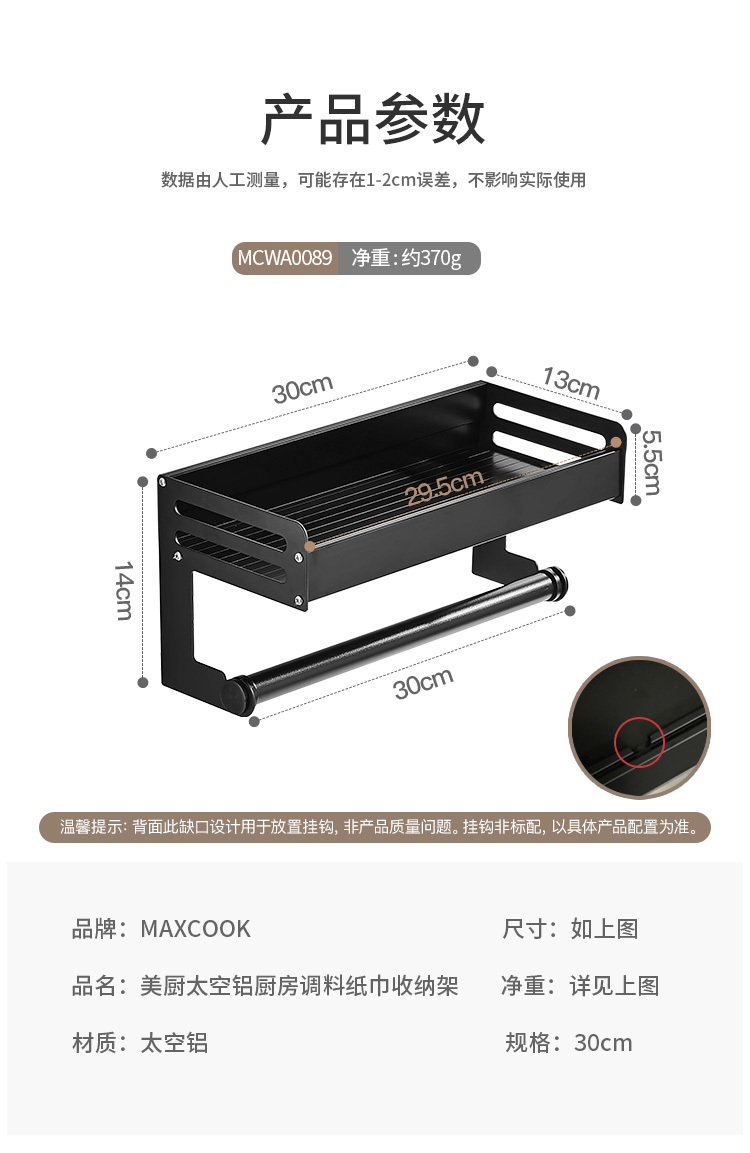 商品名称:美厨太空铝厨房调料纸巾收纳储物架30cm MCWA0089 黑色