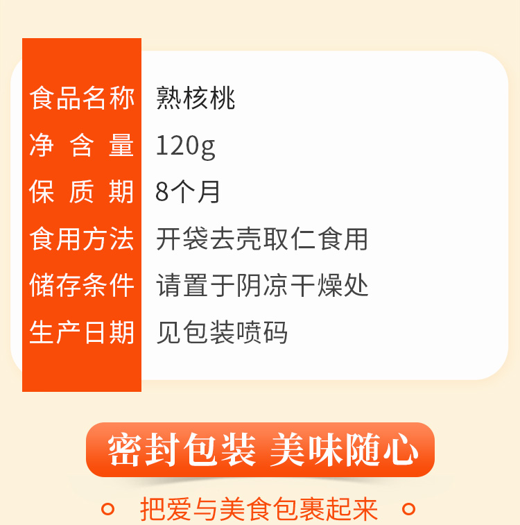 商品名称:味滋源 熟核桃120g 袋 拿铁色
