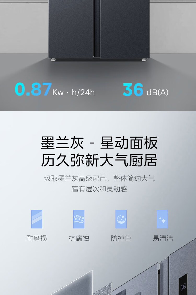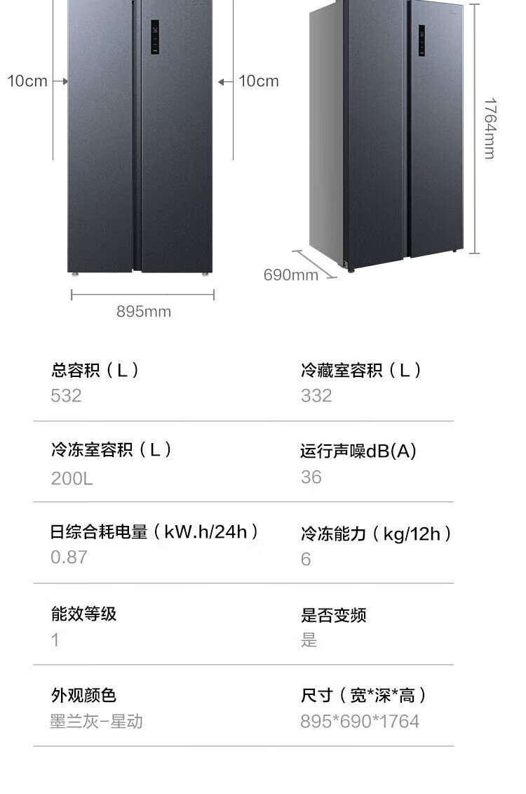 商品名称:美的(midea)532升对开门一级能效双变频制冷风冷无霜电冰箱BCD-532WKPM(ZG 墨兰灰