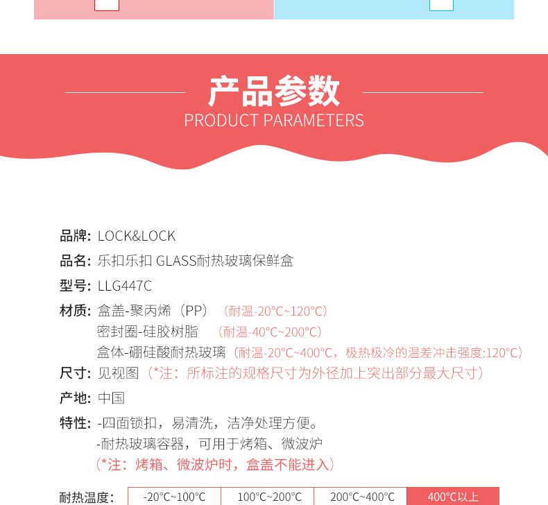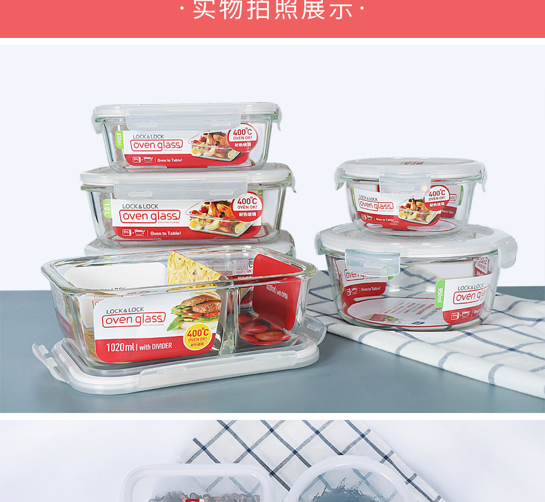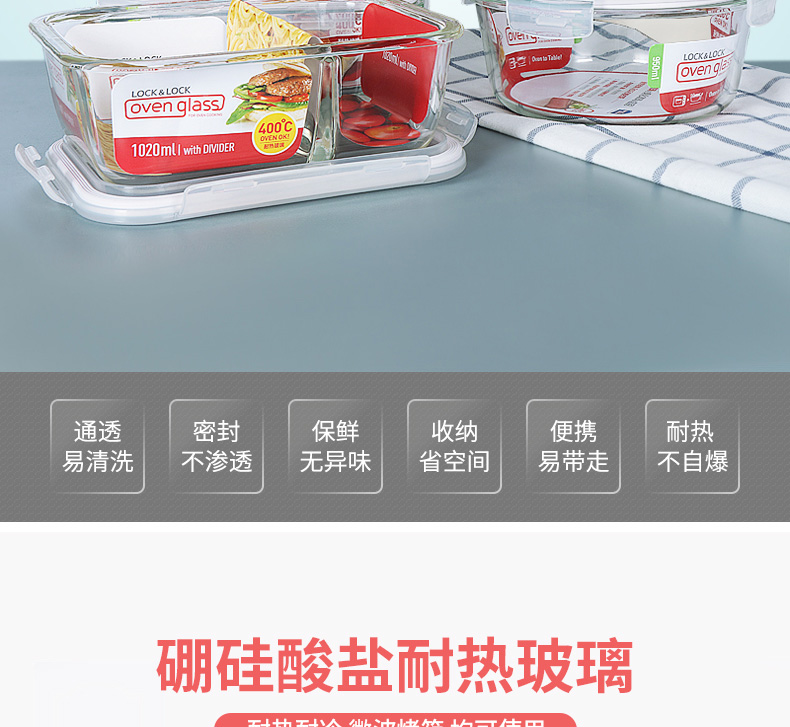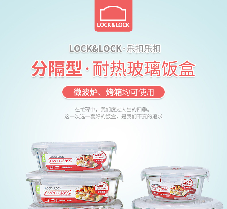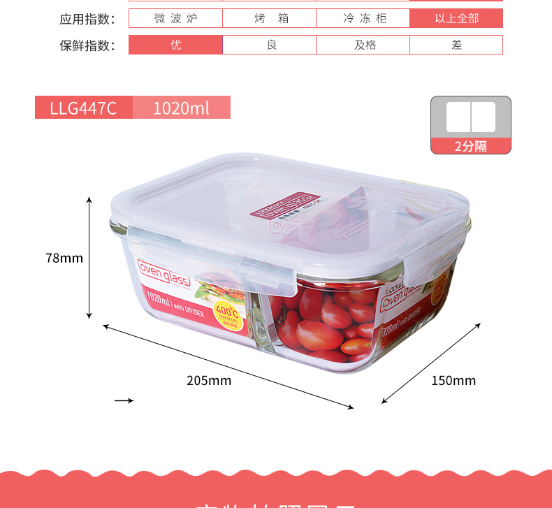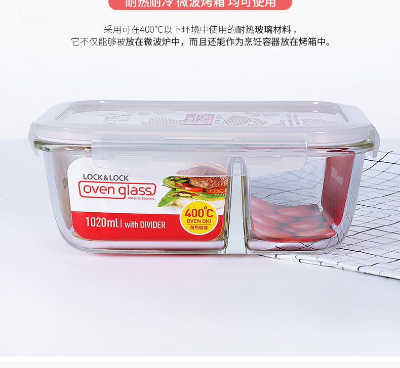 商品名称:乐扣乐扣(LOCK&LOCK)2分隔玻璃保鲜盒LLG447C(1,020ml) 无色