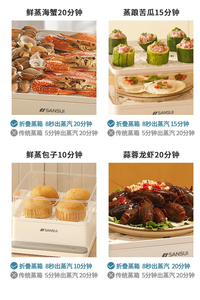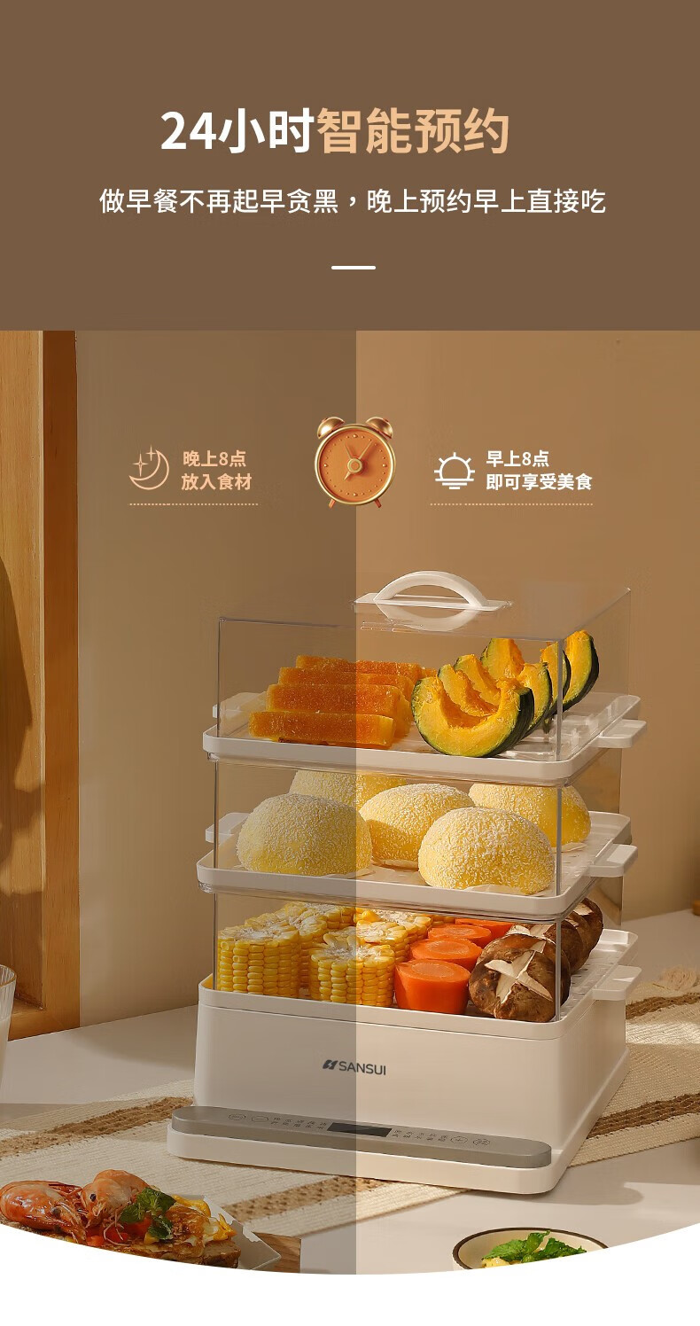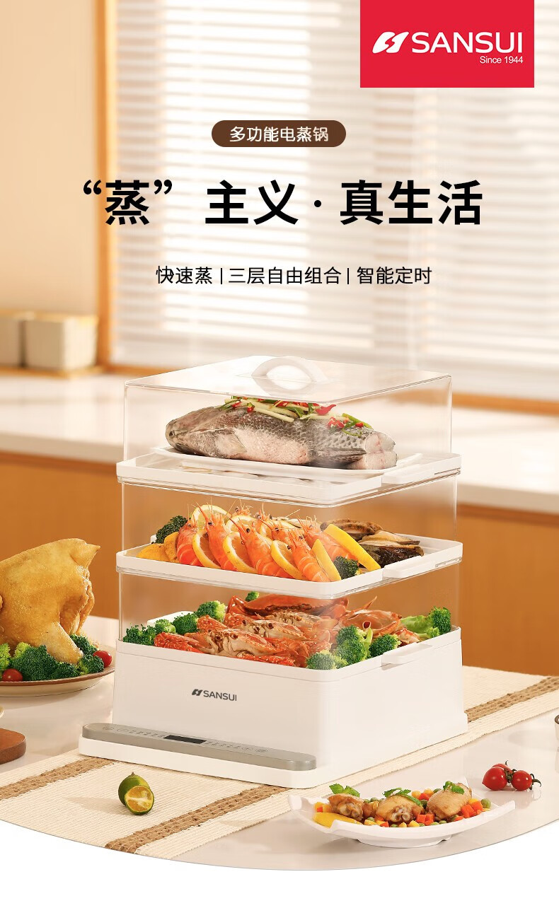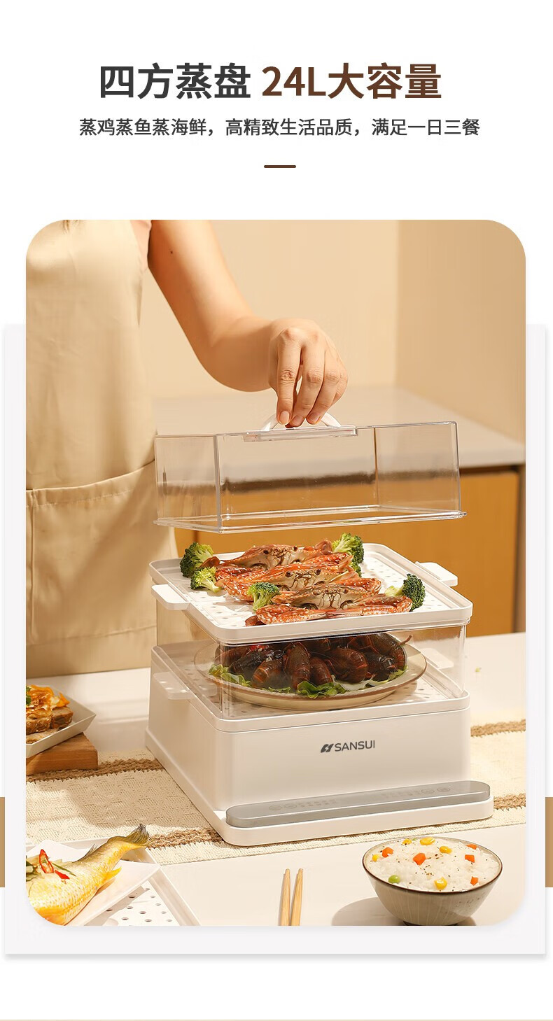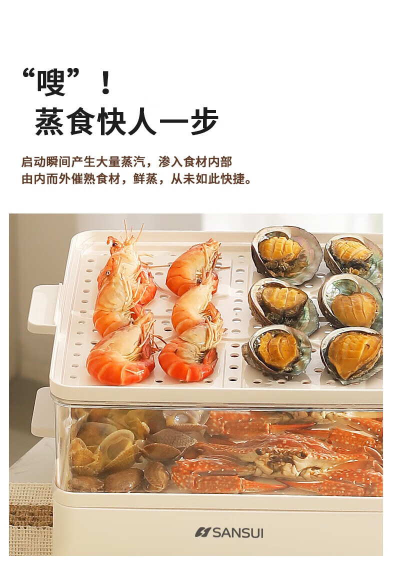 商品名称:山水(SANSUI)多用途锅电蒸锅三层电蒸笼预约保温家用电热锅24升宿舍用寝室大容量蒸汽锅/个 AJL-ZG60K