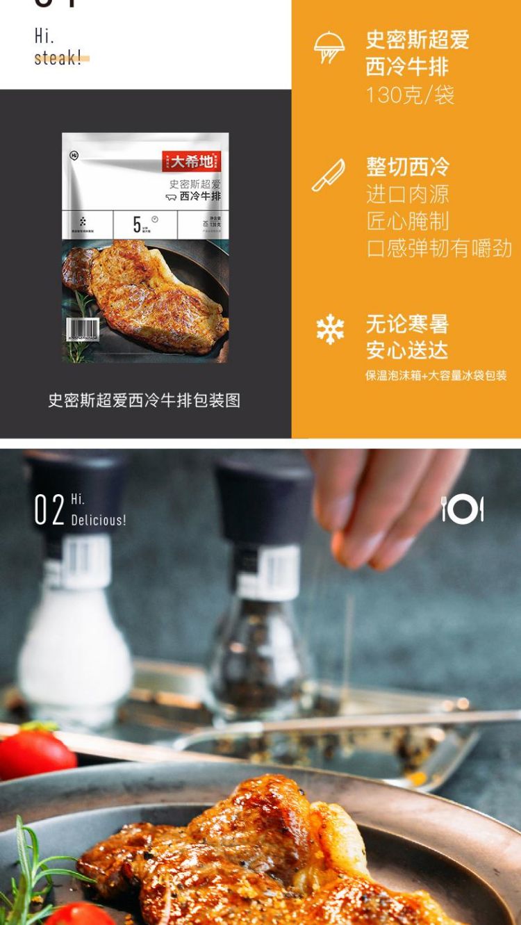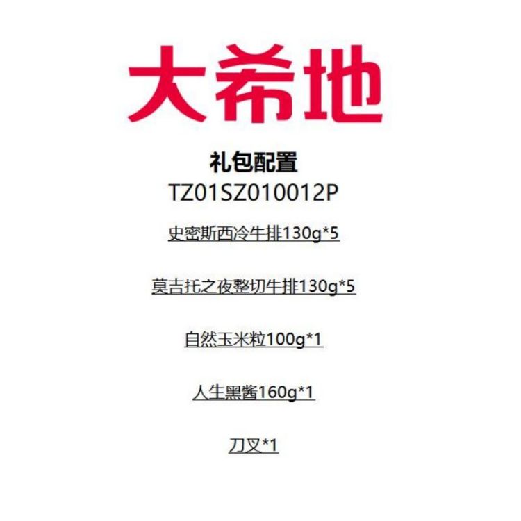 商品名称:【大希地】 牛排/玉米欢乐套餐(西冷牛排130g*5+整切牛排130g*5+玉米粒100g+黑胡椒酱160g+刀叉)