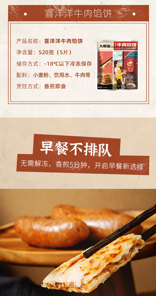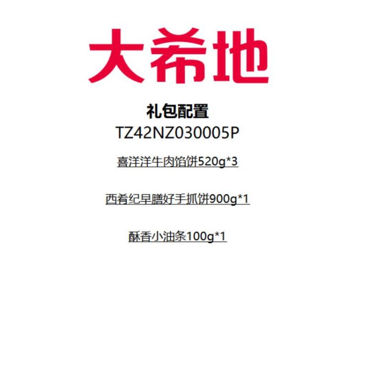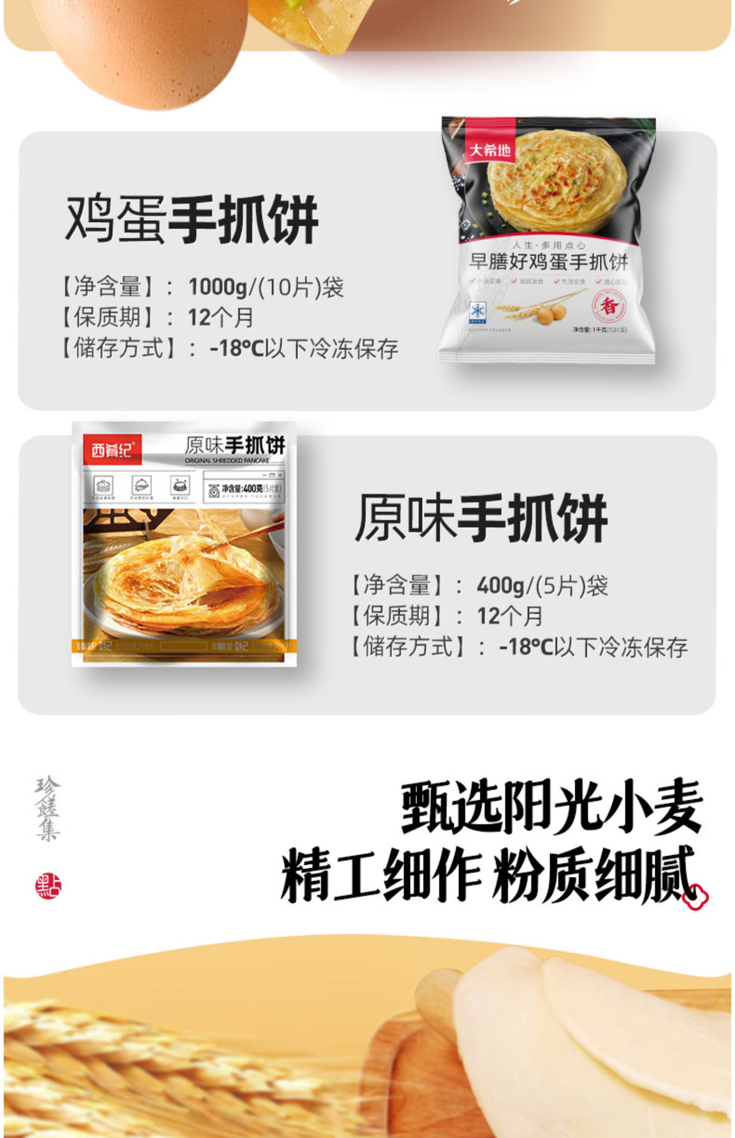 商品名称:【大希地】 馅饼/手抓饼/油条美味套餐(牛肉馅饼1560g+原味手抓饼900g+酥香油条100g)
