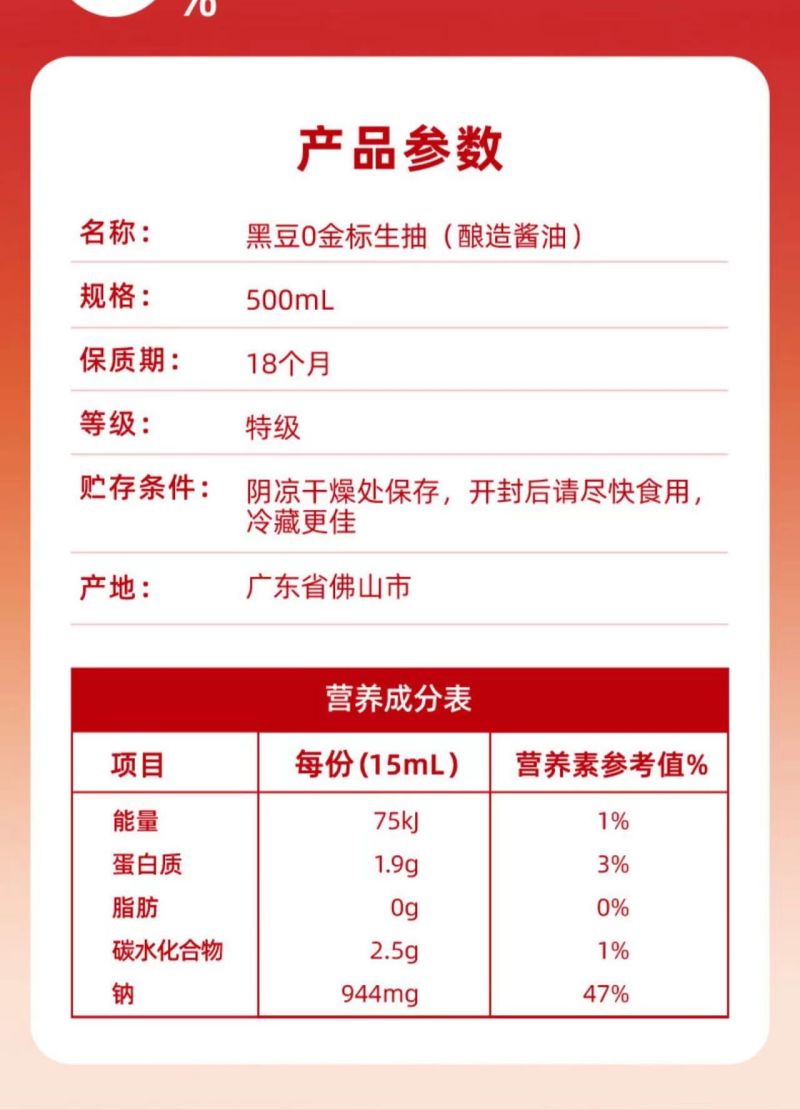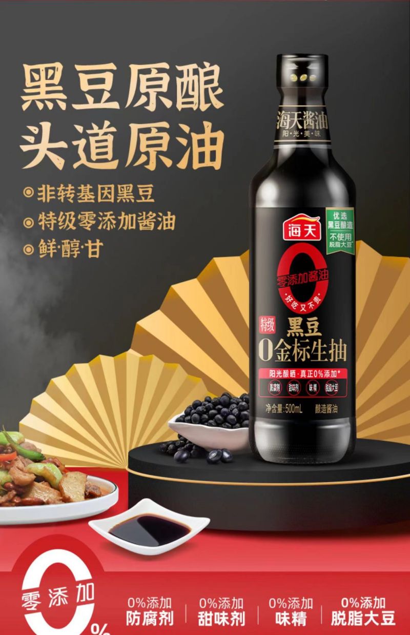商品名称:海天0金标黑豆特级生抽酱油500ml*3瓶 .