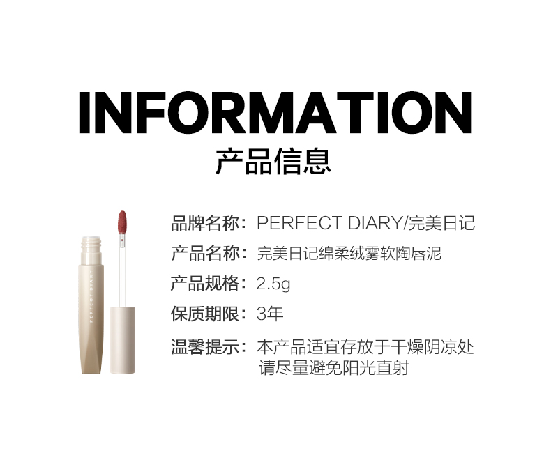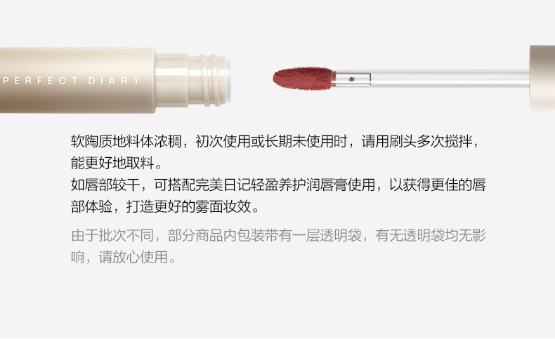商品名称:PERFECT DIARY完美日记绵柔绒雾软陶唇泥N02倦意软陶泥(支) 砖红棕色
