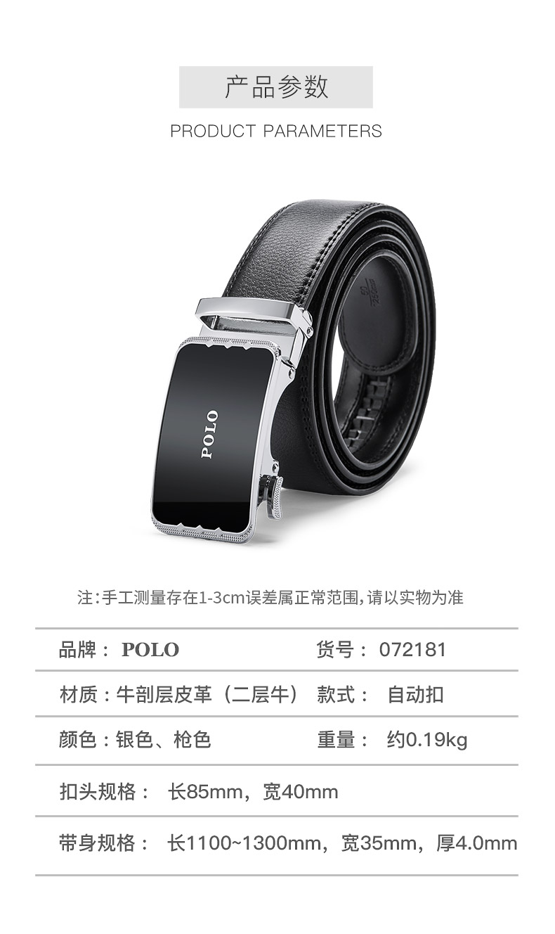 商品名称:072181 POLO 男士自动扣商务皮带牛皮休闲腰带(单位:条) 黑色