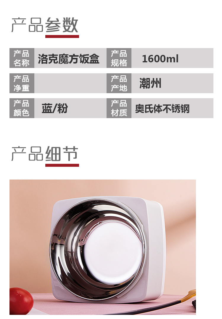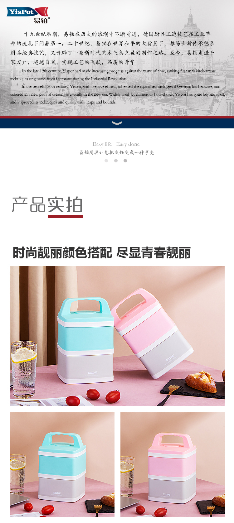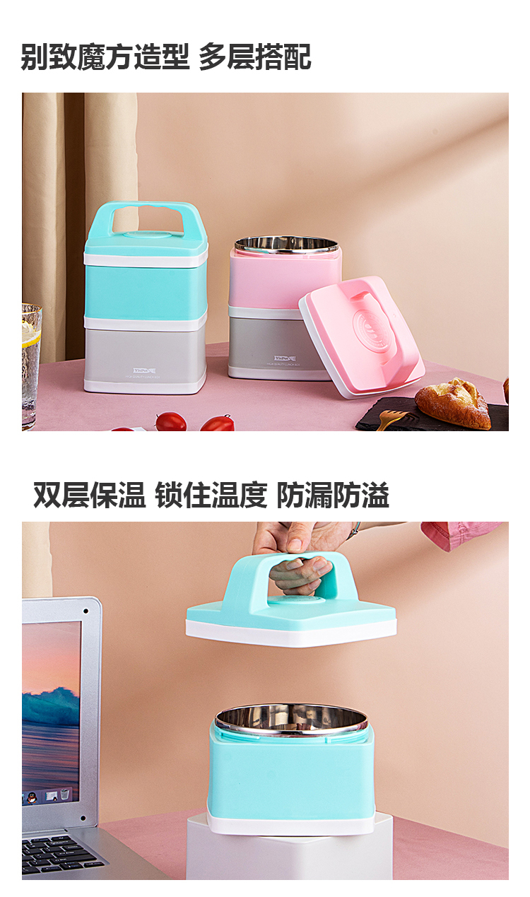 商品名称:易铂yispot 洛克魔方饭盒不锈钢双层保温饭盒分格不串味清新北欧色学生便当盒 YP-9031 北欧蓝 婴儿蓝