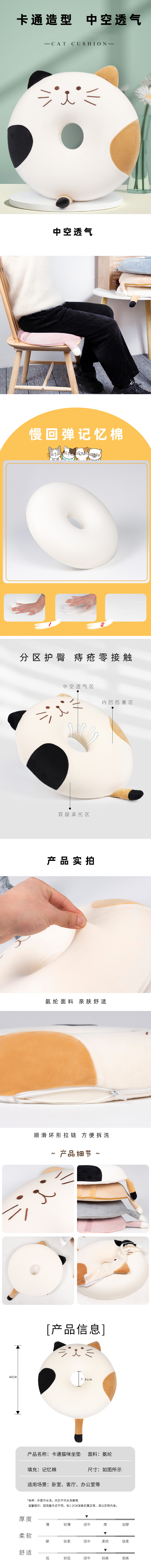 商品名称:三极 TP1228 学生加厚圆形中空座垫 直径40cm 动物型 白色猫咪