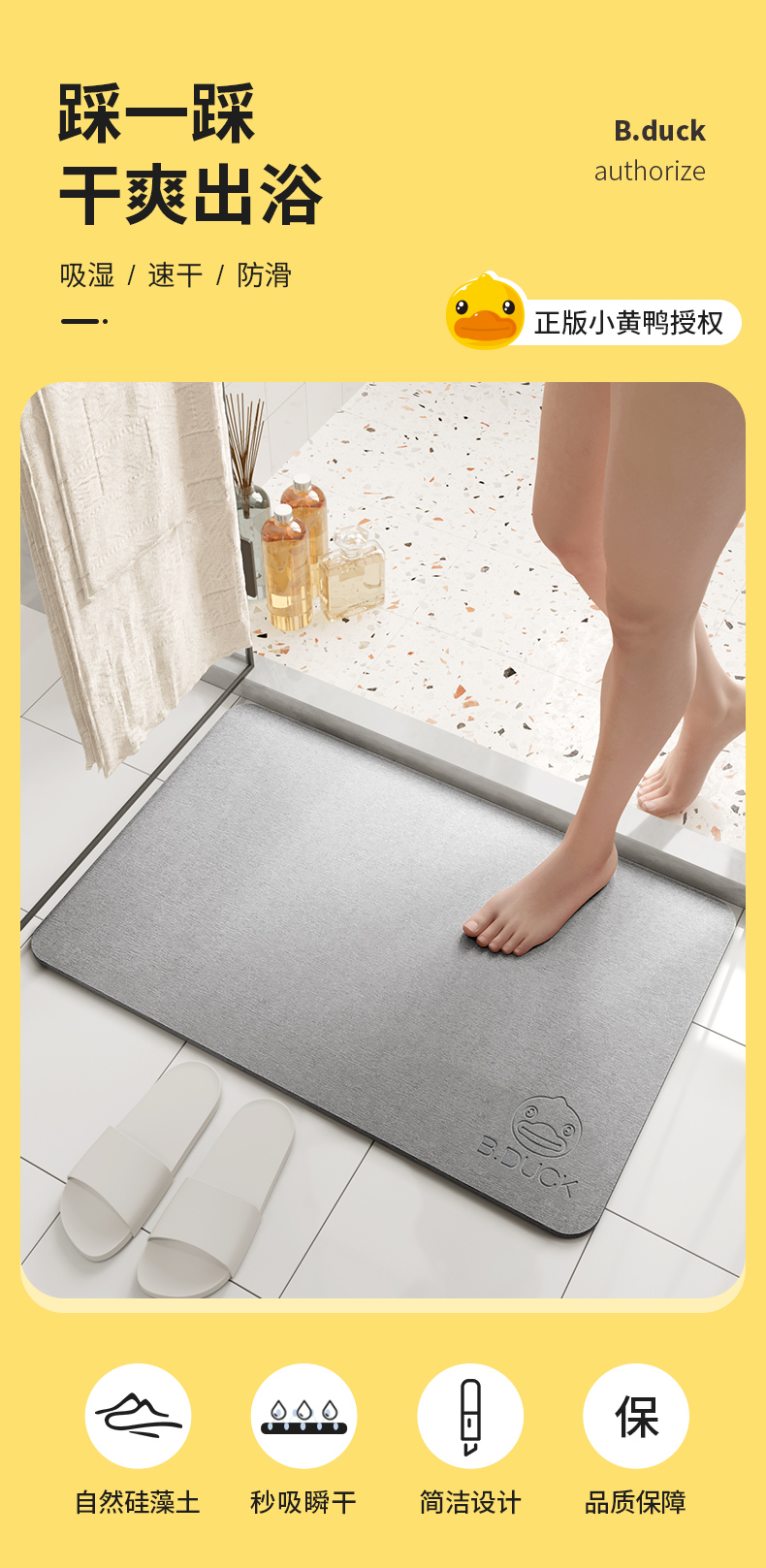 商品名称:大江地垫地毯硅藻泥浴室吸水垫-元气满满鸭-39*60cm(单位:张) 珍珠灰