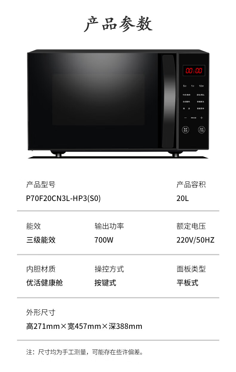 商品名称:格兰仕(Galanz)微波炉P70F20CN3L-HP3(S0)/台 黑色