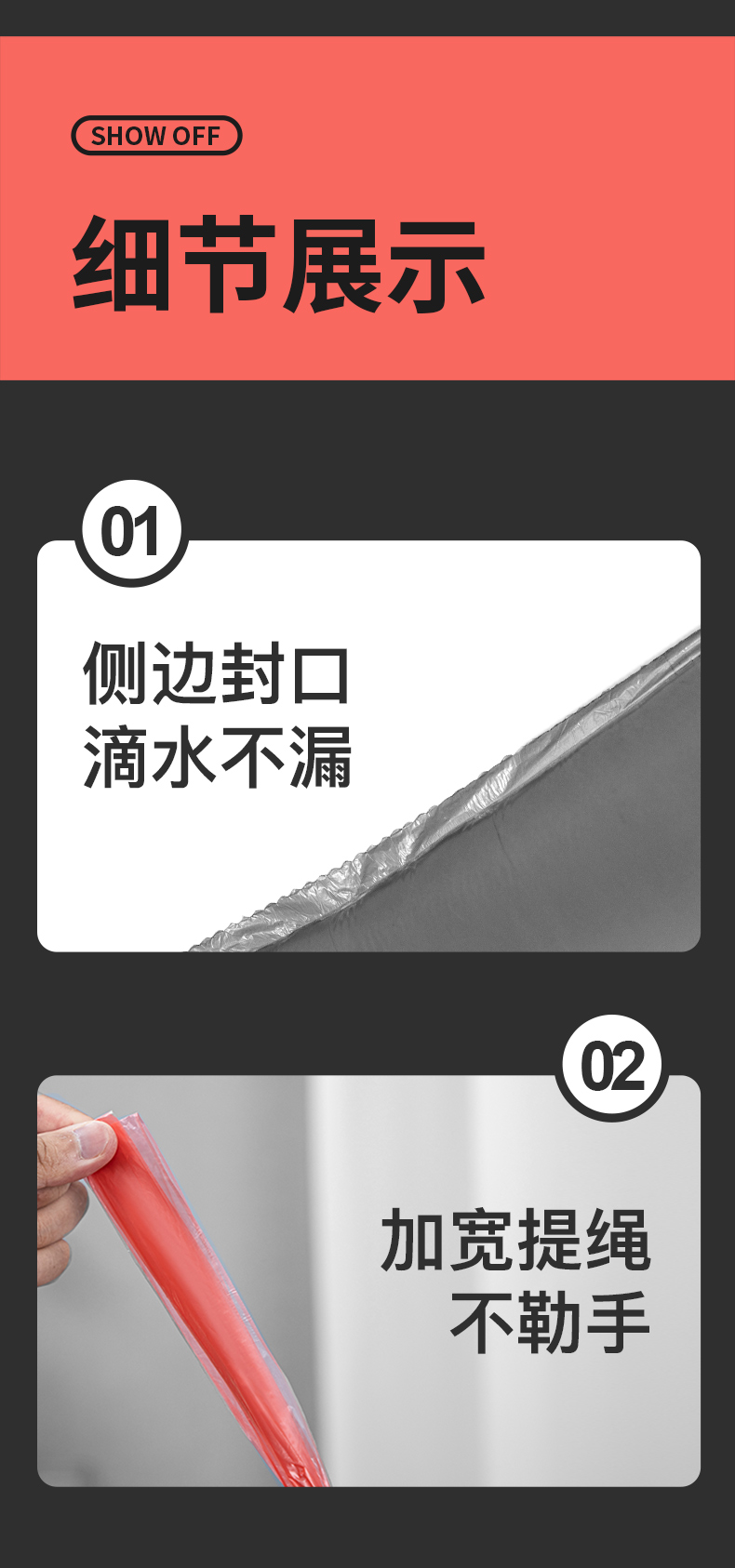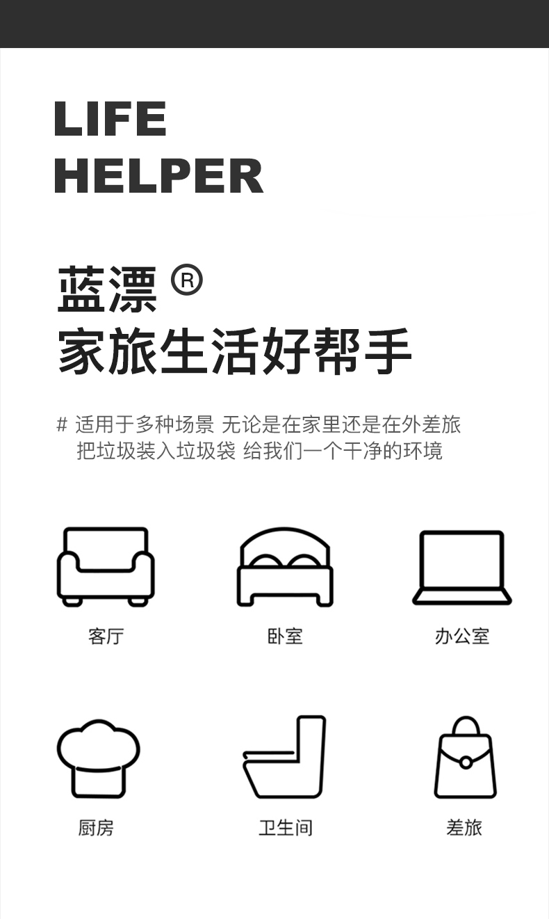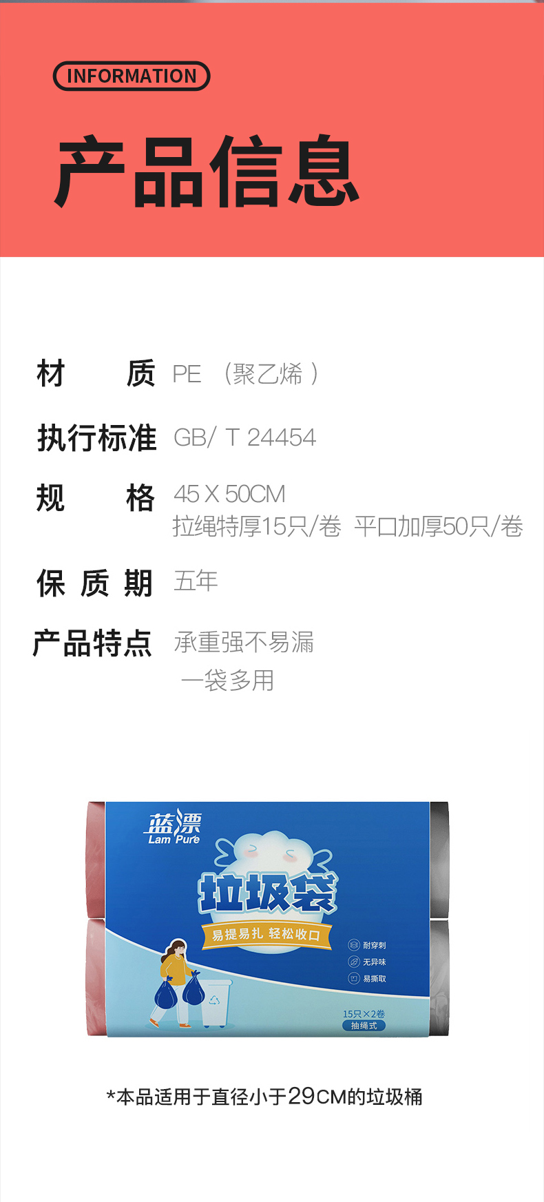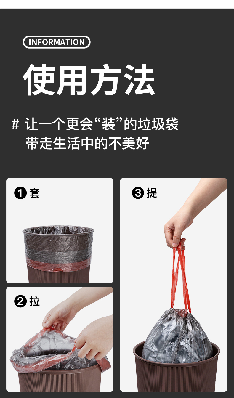商品名称:蓝漂抽绳垃圾袋15只/卷*6卷 灰色6卷