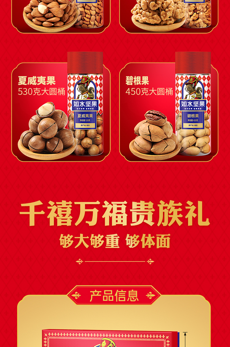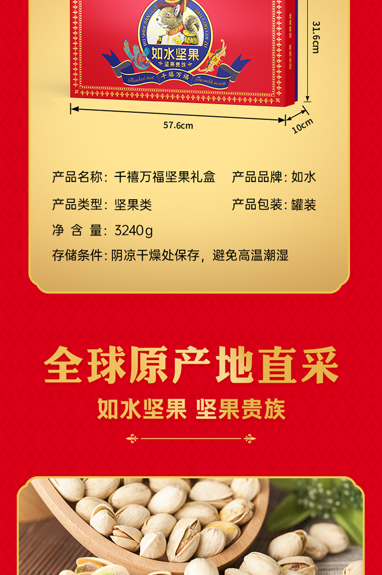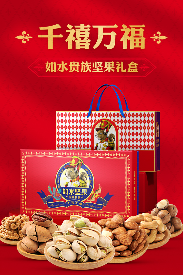 商品名称:如水 千禧万福坚果礼盒3.24kg 高端礼品公司企业福利 干果零食礼盒 千禧万福
