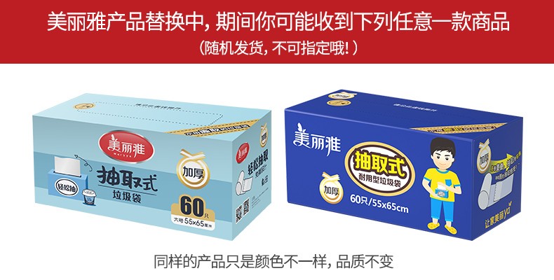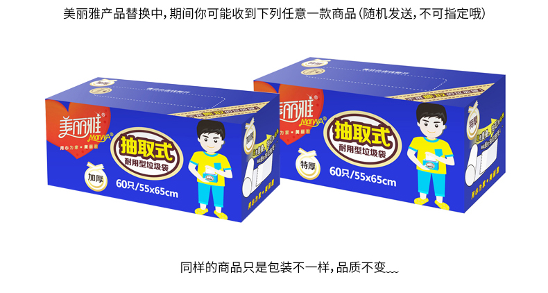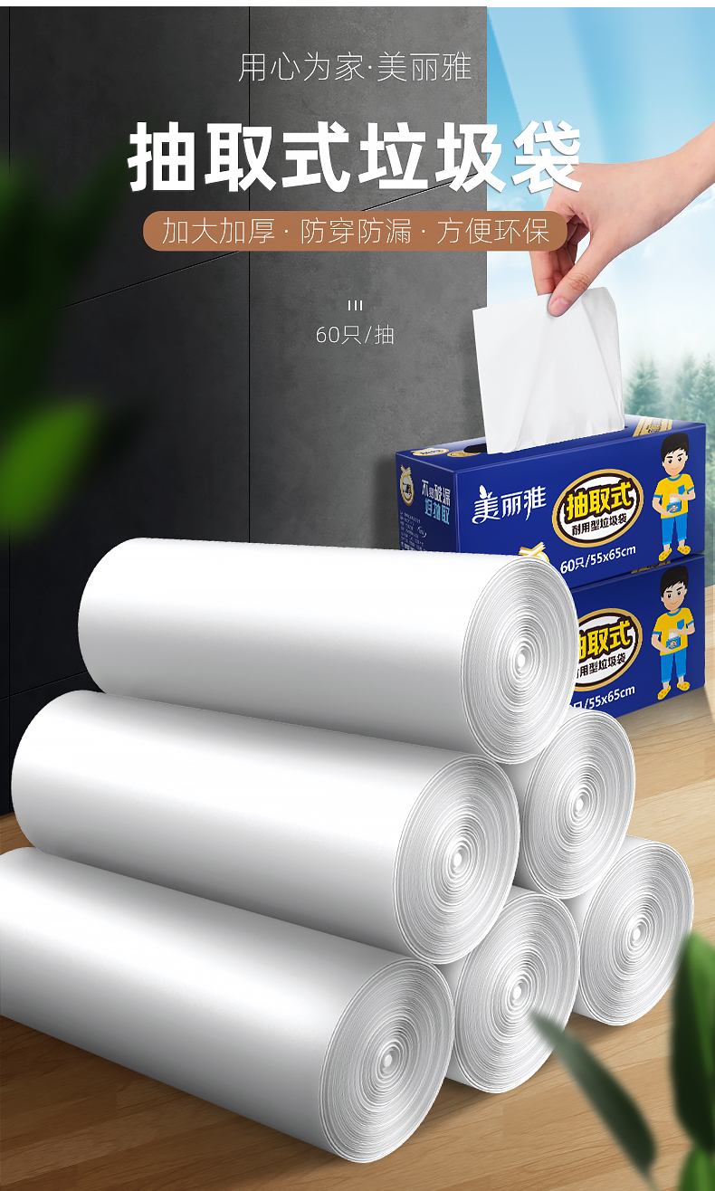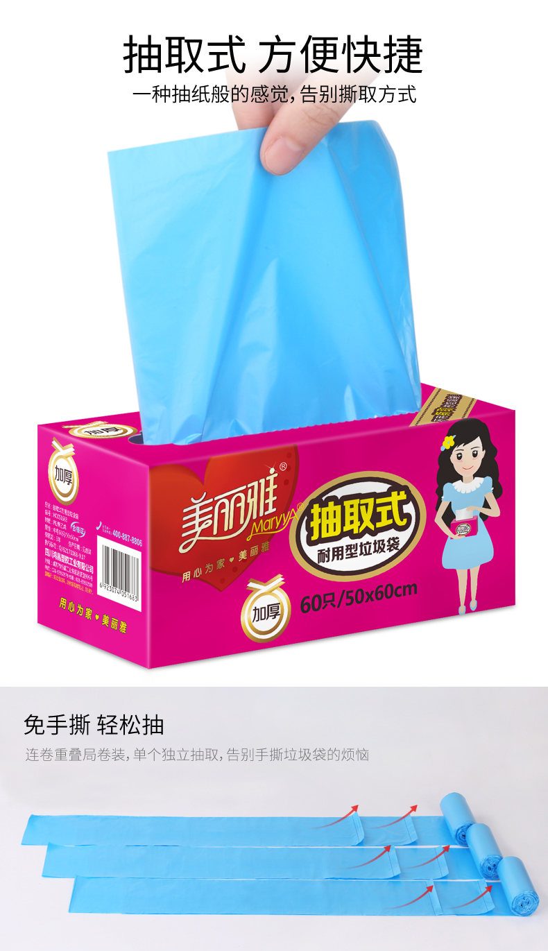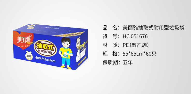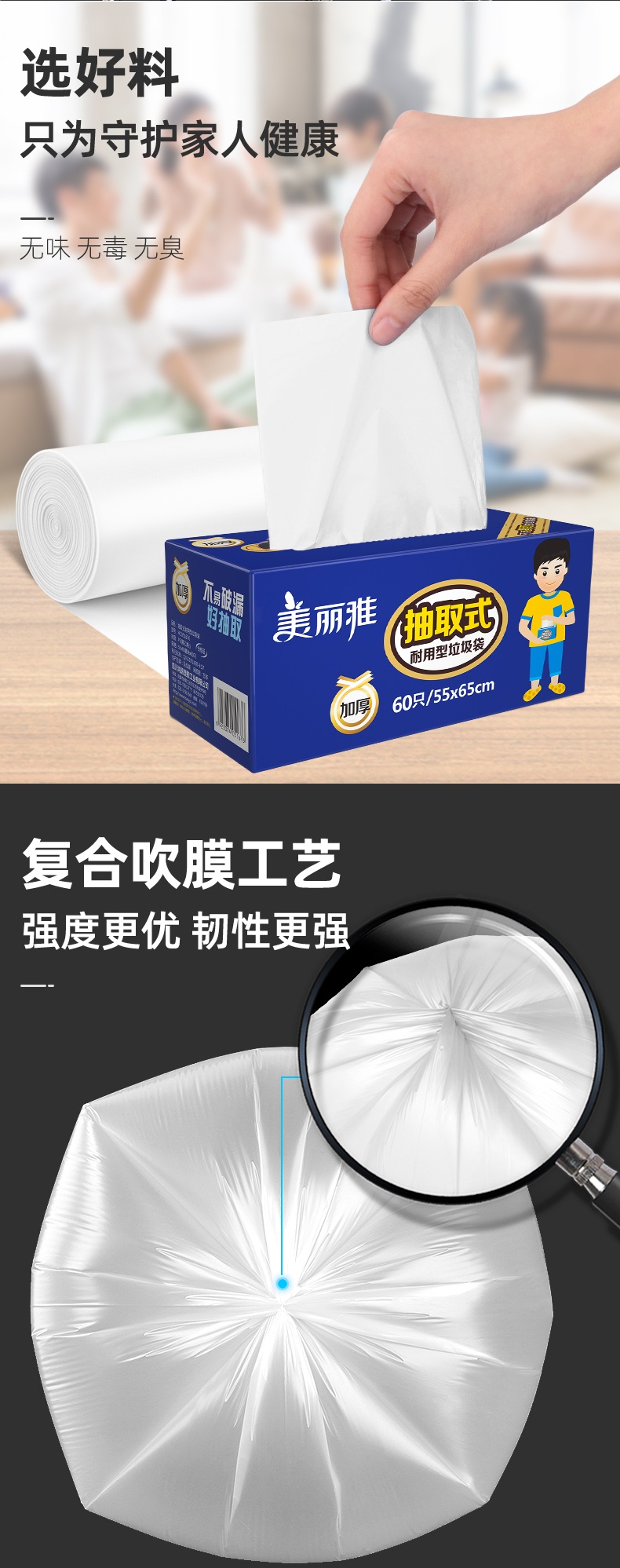 商品名称:美丽雅抽取式耐用垃圾袋盒装(中号)50*60*60只 白色