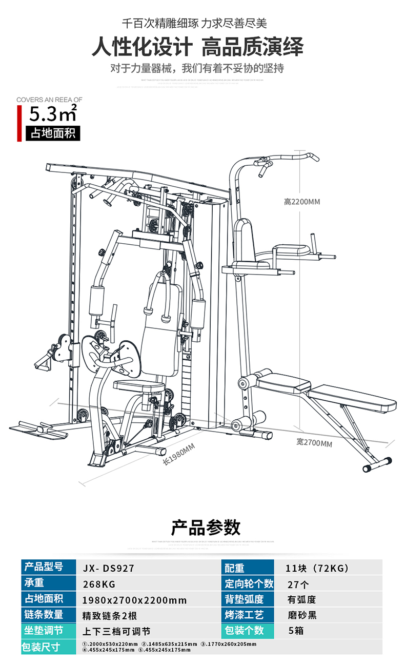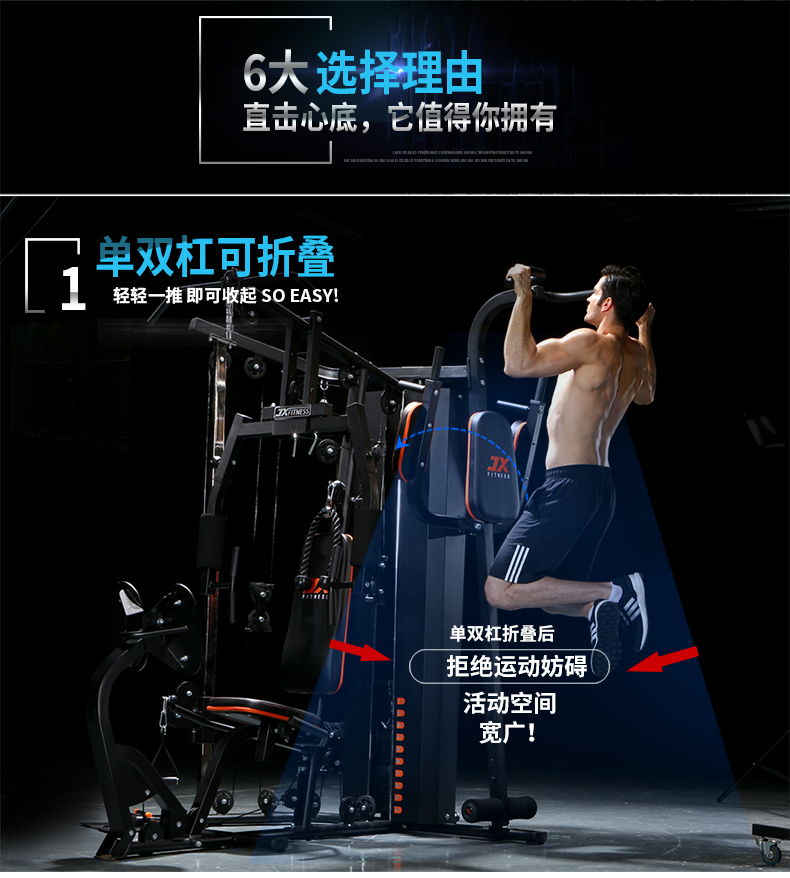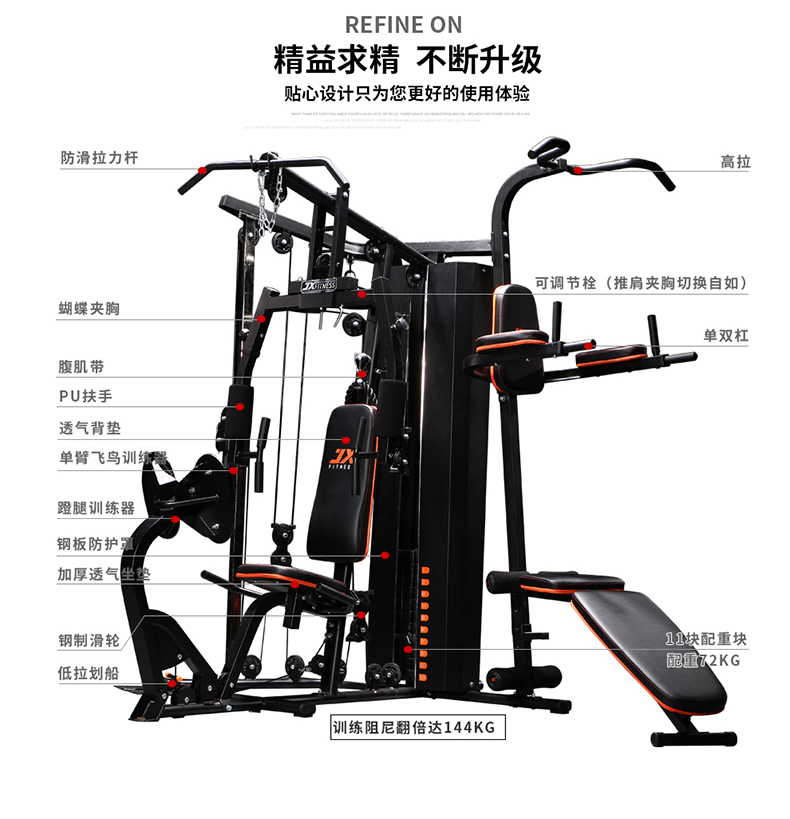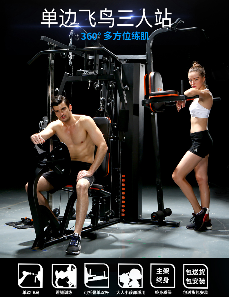 商品名称:军霞(JUNXIA)JX-DS927A 综合训练器 三人站家用款大型健身器材多功能力量运动器械 黑色