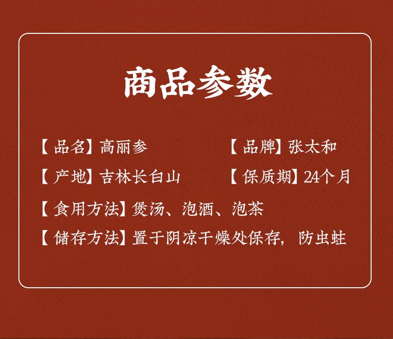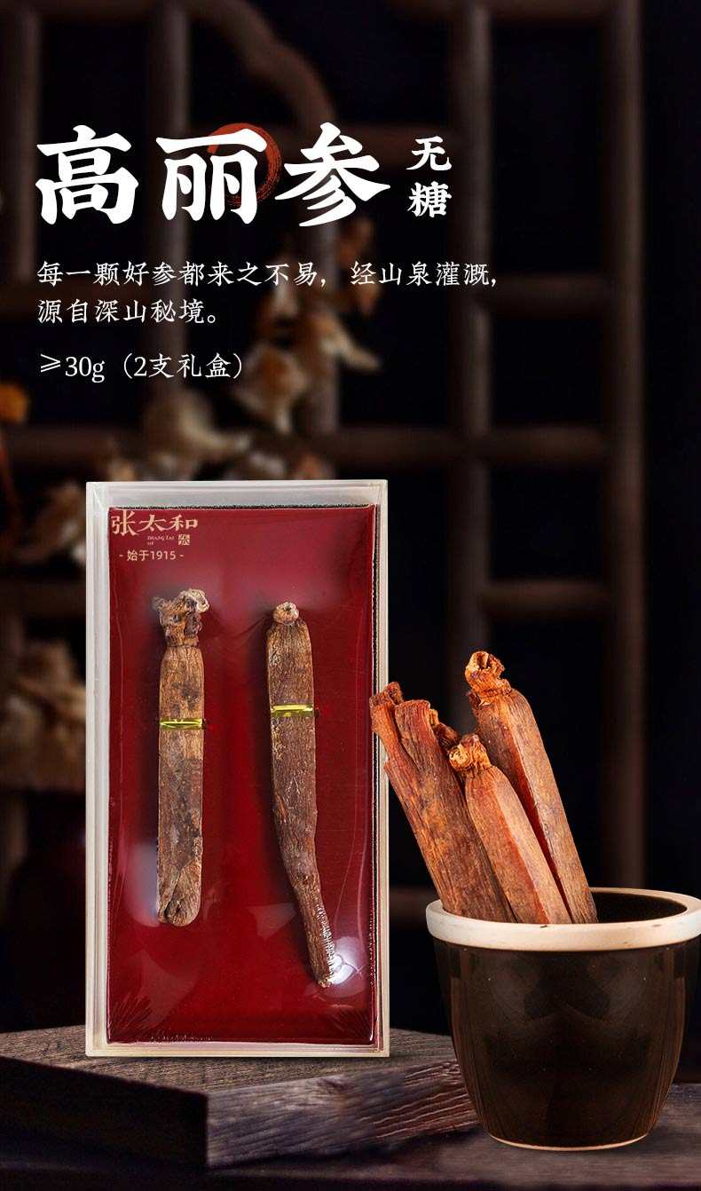 商品名称:张太和 15年20年25年野山参家庭装豪华礼盒至尊礼盒 高丽参(15g*2支)