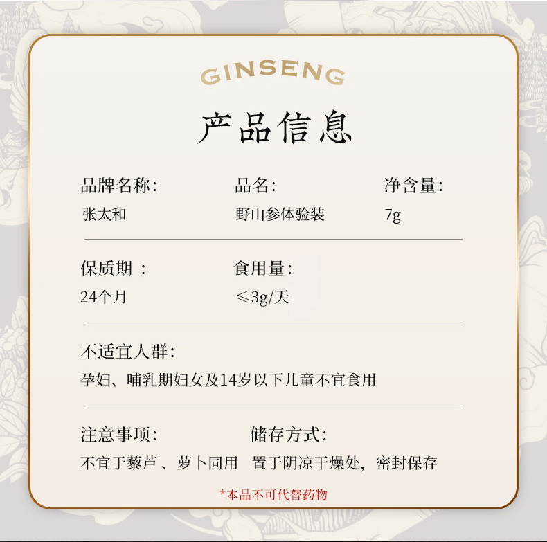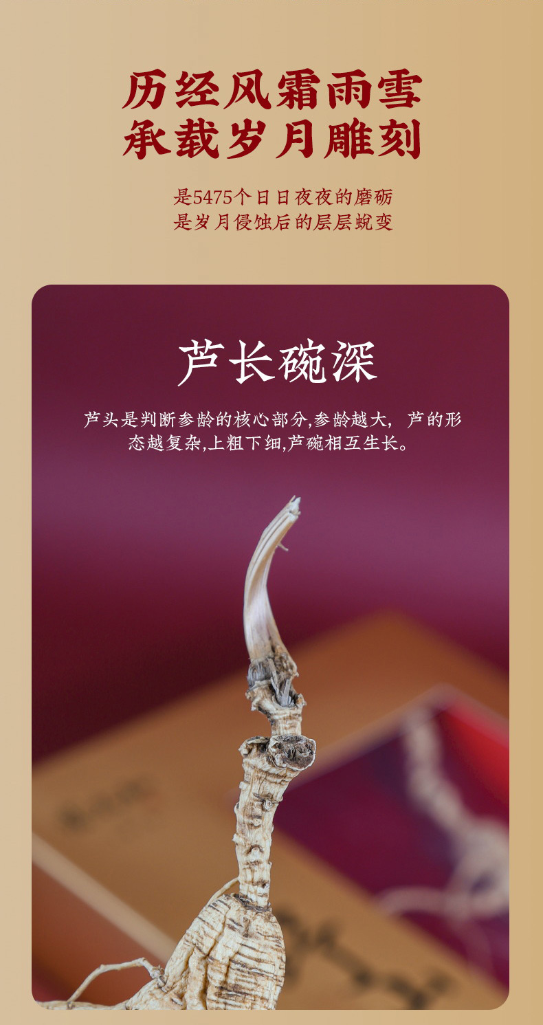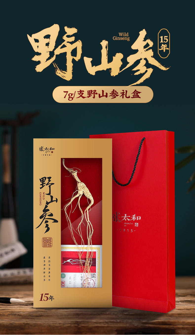 商品名称:张太和 15年20年25年野山参家庭装豪华礼盒至尊礼盒 野山参15年7g(1支)体验装