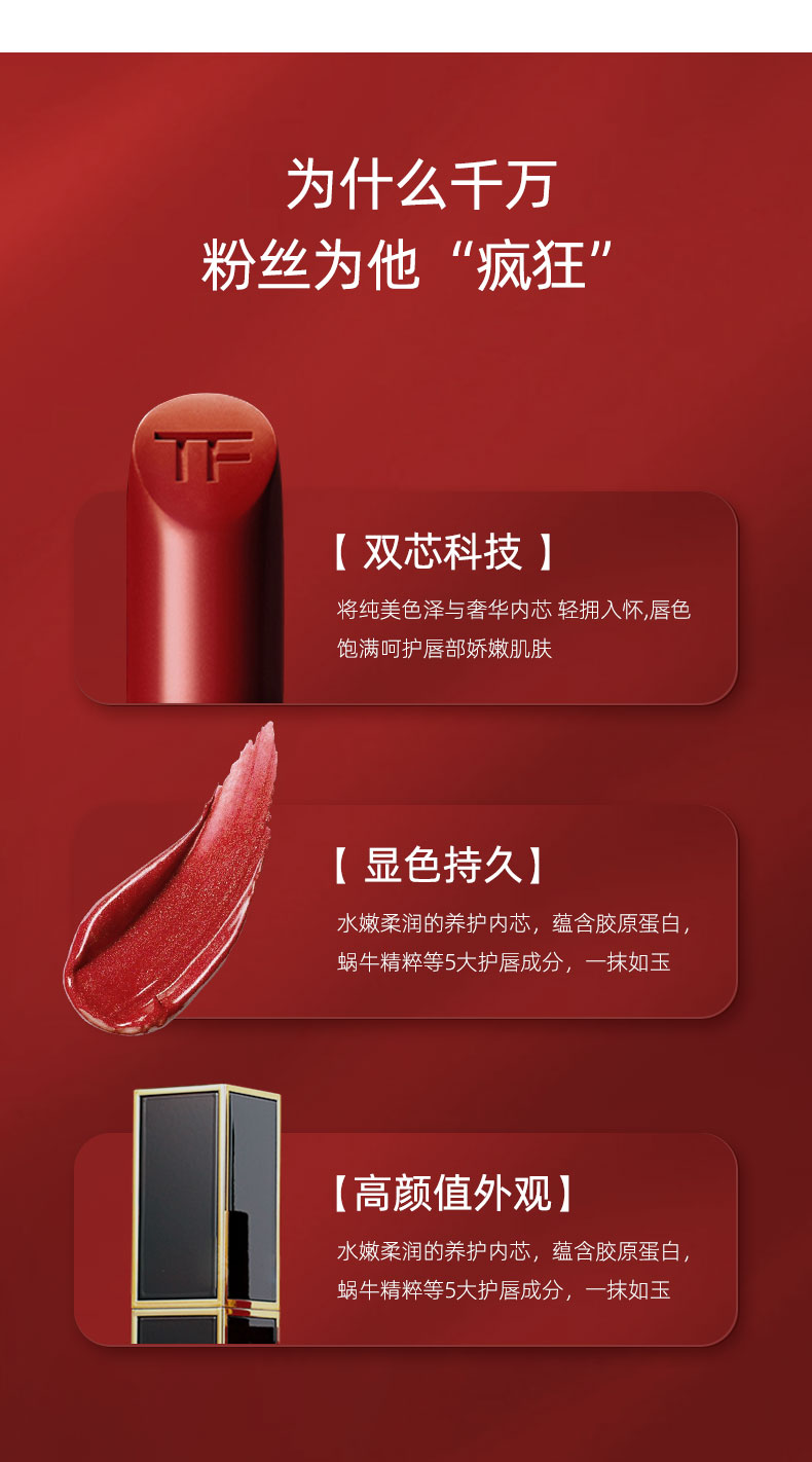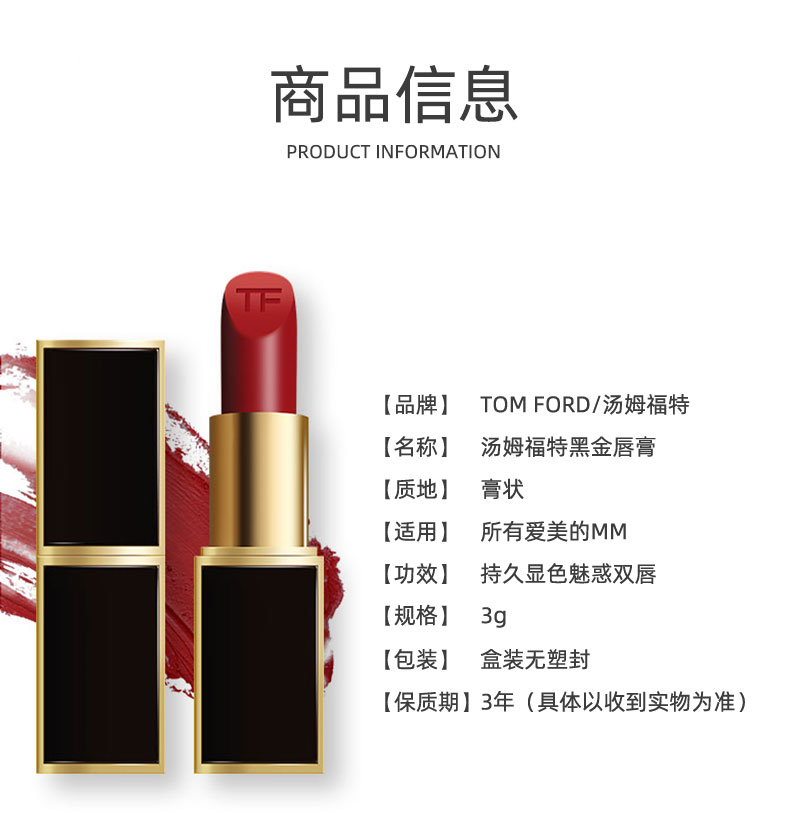 商品名称:【送礼盒+手提袋】TOMFORD汤姆福特 烈焰幻魅唇膏 TF经典黑管口红(单位:支) 玫瑰红色
