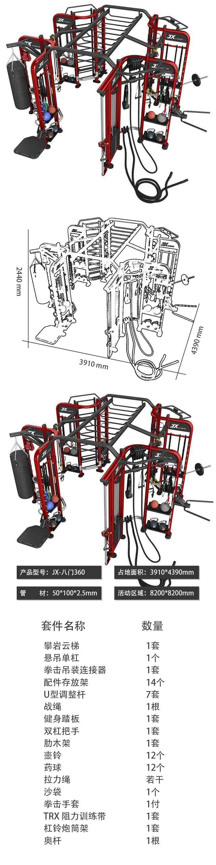 商品名称:军霞(JUNXIA)JX-八门360多功能健身器材健身房商用综合训练器私教运动器材 黑色