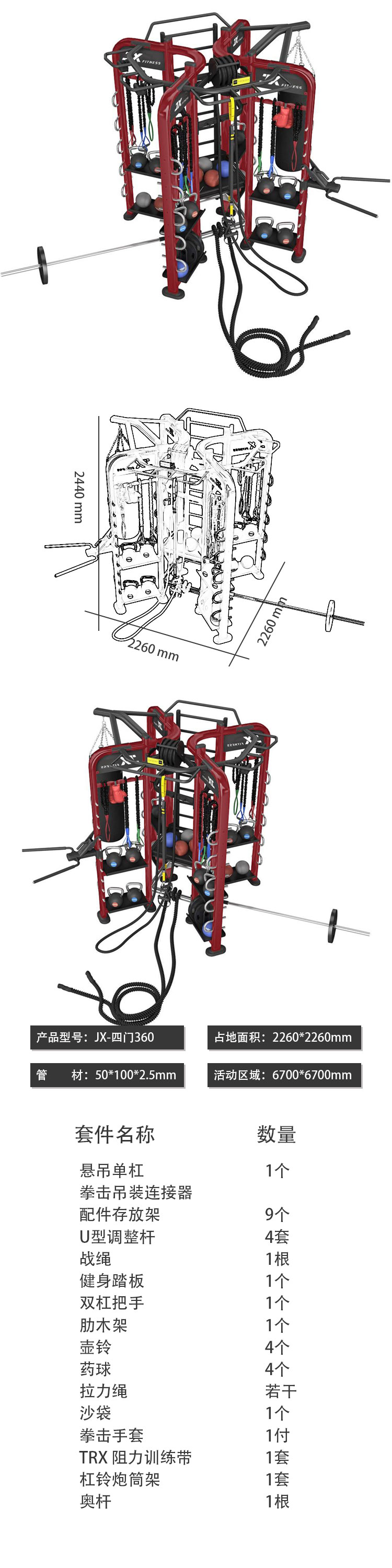 商品名称:军霞(JUNXIA)JX-四门360综合训练器健身房多功能健身器材私教器材 黑色