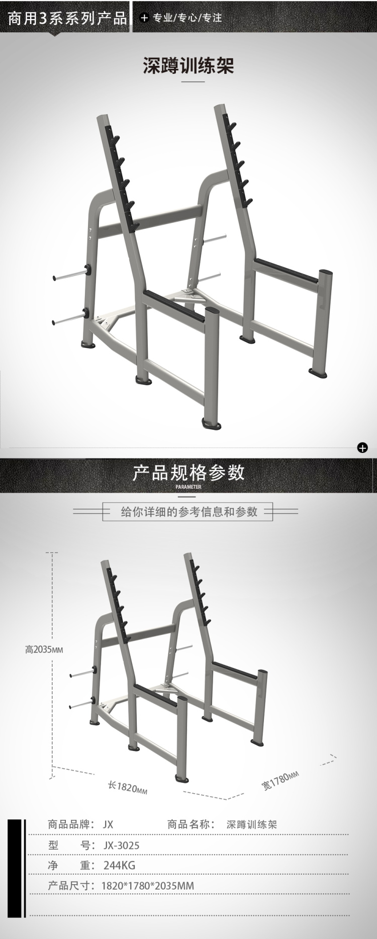 商品名称:军霞(JUNXIA)JX-3025 深蹲训练架 黑色